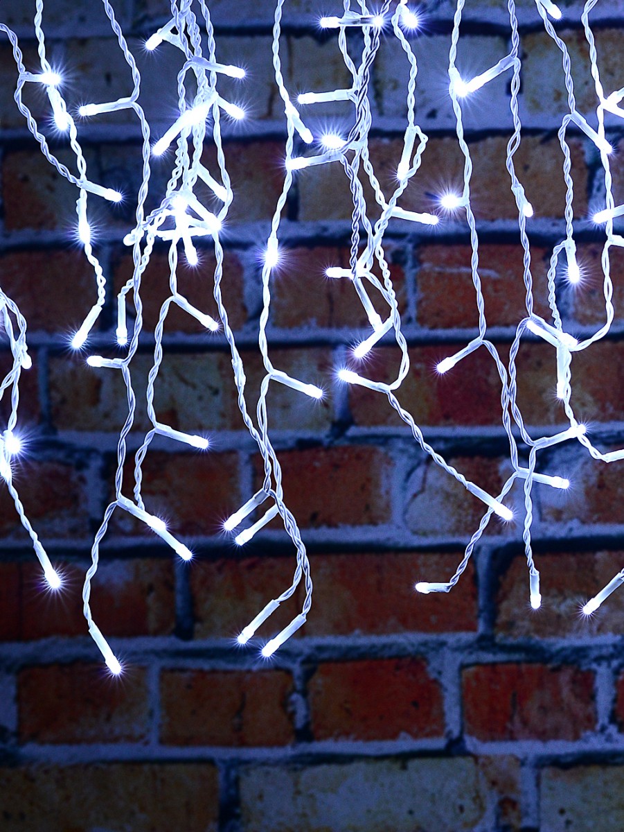 Light up your holiday with these cool white led icicle lights that have a total length of 35m covering most of your lighting needs and a generous 12m lead so that you can easily use them both indoors and outdoors. Comprising of 1008 cool white LED bulbs in white wire casing, these bulbs drop down in pretty strands of different lengths depending on the number of bulbs in each strand.