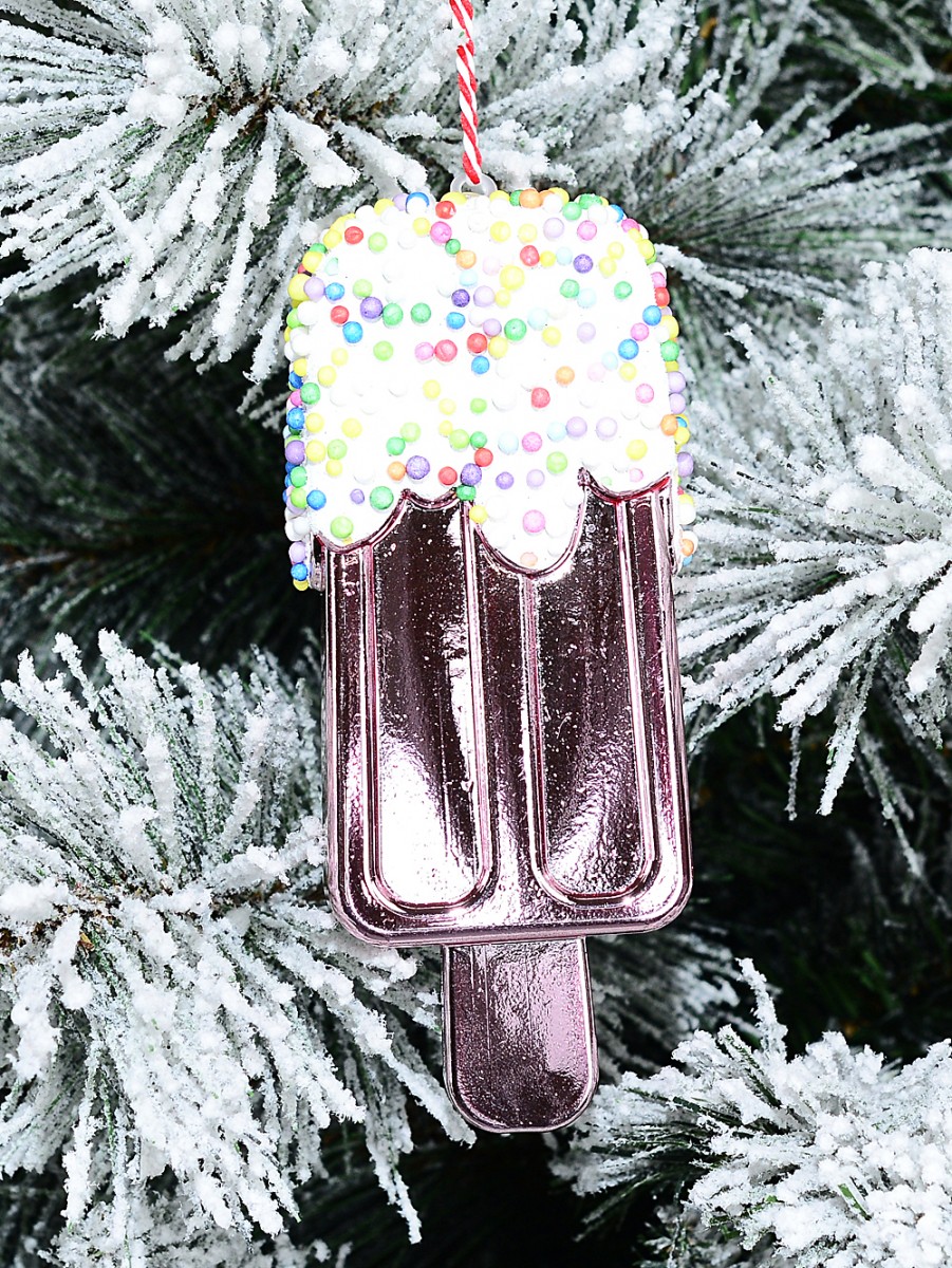And we love that the little nonpareils are actually tiny sprinkle balls. Be prepared for a few to drop off when you first take it out of the packaging - it happens every time. The red and white string matches beautifully with most Christmas colour schemes, but it's the playful nature of this piece that makes it fit right in with classic holiday decorations or even a pastel lolly-themed tree. Kids tend to gravitate toward it straight away! We have to add, as tempting as it might look, don't eat it - this popsicle decoration is for display only!