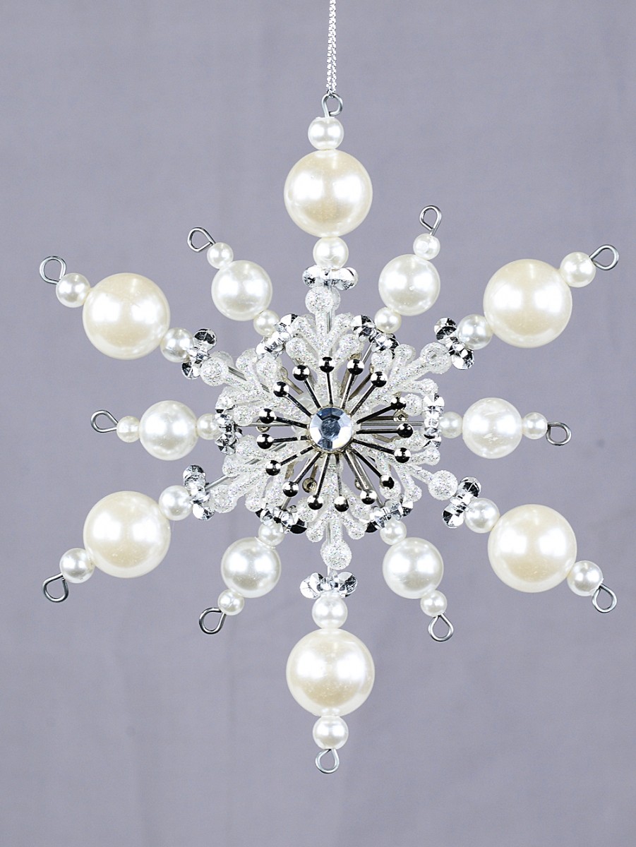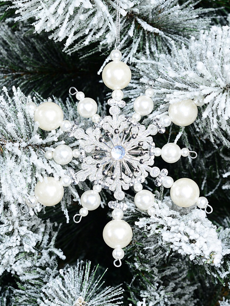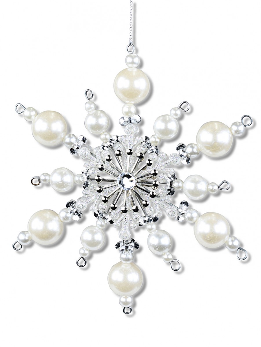 At its heart - a diamante centre that sparkles under the fairy lights and brings out the pearly white and silver finish. It measures 15cm x 18mm x 15cm, which makes it a showstopper on any tree without being too heavy or oversized. The attached silver string makes it easy to hang wherever feels right.
