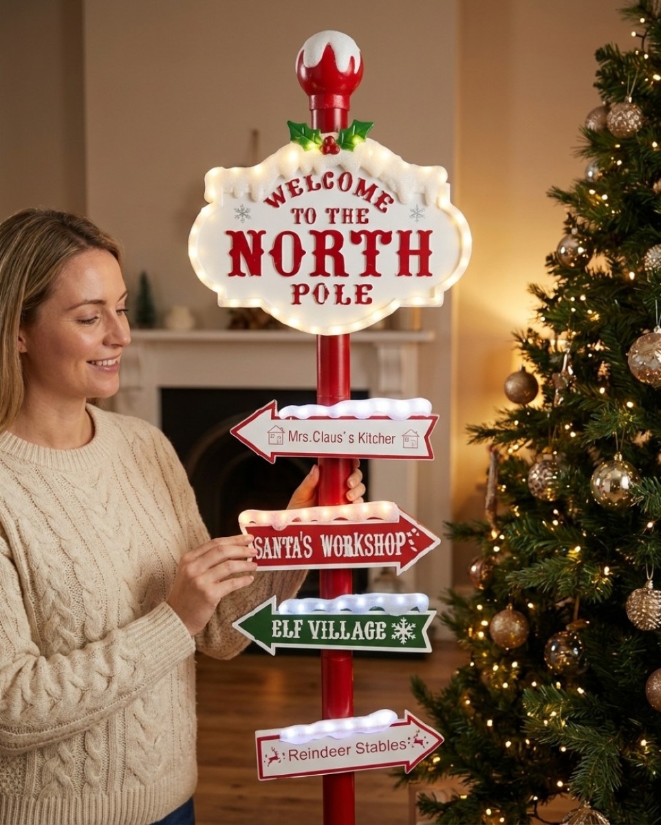 Create A Magical Festive Entryway With This 1.5m Life-Sized North Pole Signpost