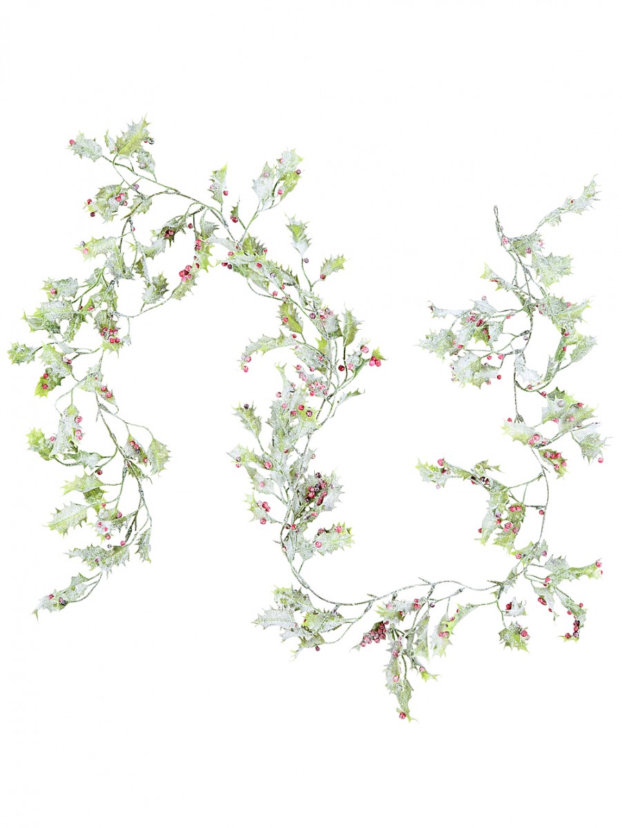 Showcase a proclivity for panache and uncanny decorative insight this Xmas when you creatively decorate your home and office with this Frosted Holly Leaf & Berry Garland. This garland of beautiful flowers has a frosted look with several white and green coloured flowers all attached to a thin stem. The end of each tree branch even ends in delicious looking red berries.