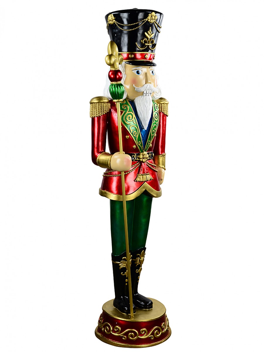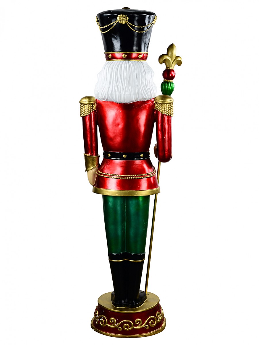 It's got all those little things that make it look and feel so special - gold flur-de-lis sceptre with classic red and green, a black shako trimmed with gold ornaments, beautiful white hair with a bold moustache and beard. And we can't get enough of that detailed jacket! Finishing your Christmas display with a life-size polyresin ornament like this is pure magic, and you'll feel its holiday luck every time you walk by.