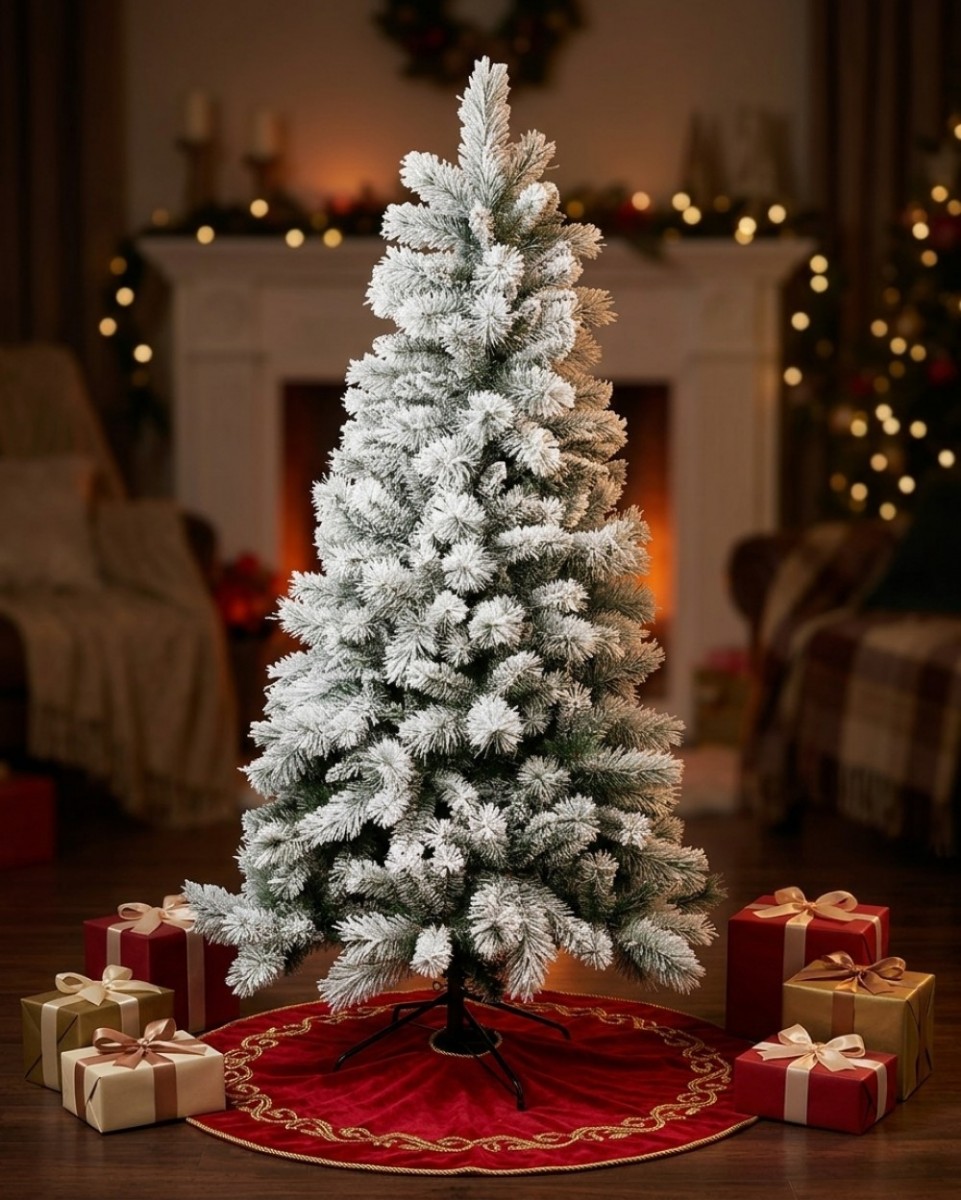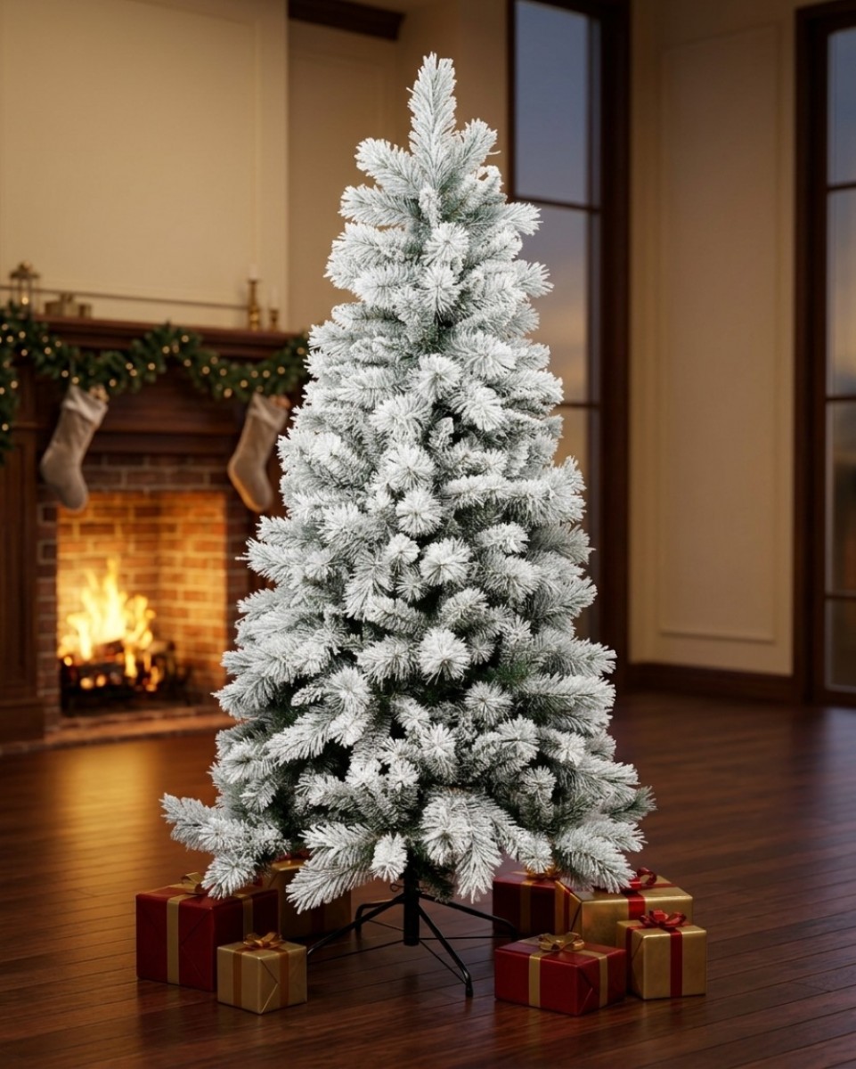 Bring the serenity of a Canadian winter indoors with the Yukon Winter Heavily Flocked Christmas Tree. Standing at a versatile 1.8m tall, this tree features a premium blend of spruce and fir needles heavily coated in a non-toxic, industrial-grade snow material for an authentic forest-fresh appearance. Expertly crafted with 599 tips, it provides a dense and multi-dimensional silhouette that serves as a spectacular canvas for your indoor and outdoor festive lighting