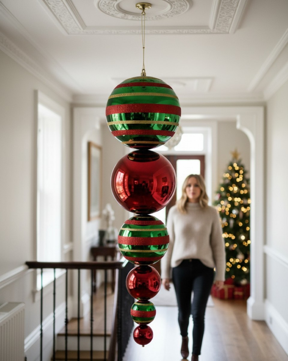 Command the attention of every guest with the breathtaking scale and traditional charm of this monumental Heritage Stripe finial, meticulously designed to offer a vibrant and prestigious holiday glow. Standing at a full 1 metre in height, this oversized silhouette features six descending bauble spheres that transition elegantly from a substantial 28cm down to a delicate 80mm. Whether featured as a central showpiece in a retail shop front or suspended in a grand festive lounge room, its presence defines the peak of holiday luxury