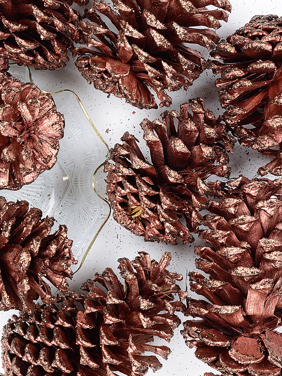 It just wouldn't be Christmas without a touch of rustic copper pinecones on your tree or arranged beautifully in a decorative bowl. And with our 200g bag of Large Copper Natural Pinecones With Glitter Tips, well, you've got all that woodland magic and a little sparkle too. Each cone's been hand-picked for quality and then dusted with shimmering glitter - we know it can get everywhere, but it's part of the Christmas fun, isn't it? That lovely copper hue reflects the fairy lights at night and there's a generous mix of sizes. About 8 conifer strobili in a 200g bag (roughly 70mm x 70mm x 11cm per pinecone), which means you get enough to tuck into garlands, wreaths, centrepieces... honestly, just about anywhere you want some natural charm. We adore these paired with deep greens and warm whites on the tree - but they look stunning alone too, especially if you've got a bowl handy. Every piece is organic (Australian biosecurity safe) and will vary ever-so-slightly from what you see here.