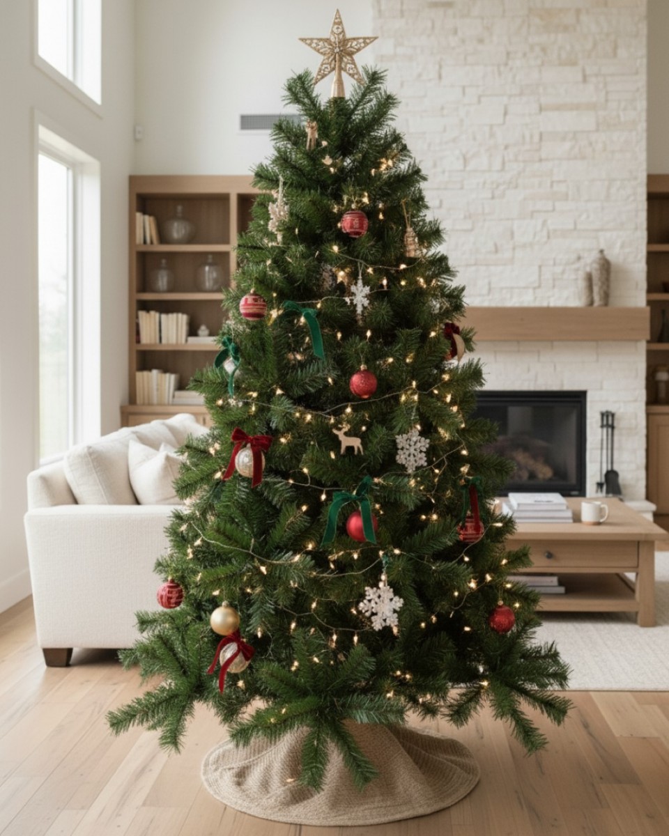 Command attention this festive season with the Eastern Evergreen Artificial Christmas Tree. Standing at an impressive 2.3m tall, this tree is the ideal choice for larger living spaces and homes with high ceilings, offering a lush and natural-looking silhouette. With a superior count of 1221 fir and spruce tips, this tree provides a dense, professional-grade canopy that serves as a spectacular backdrop for your extensive collection of ornaments and festive lights