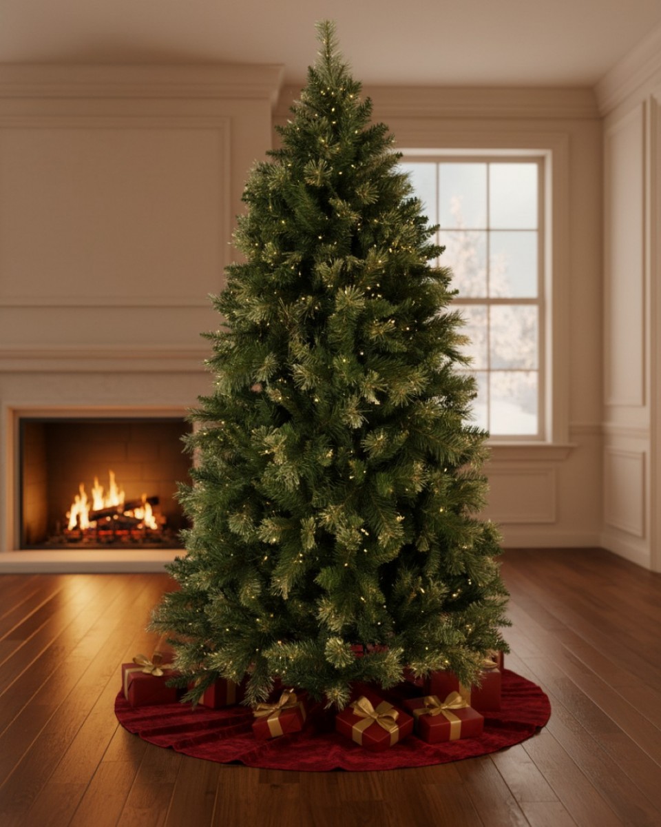 Create a breathtaking festive focal point with the Rocky Mountain Evergreen Christmas Tree. Standing at an impressive 2.3m tall, this tree is designed for those with higher ceilings who desire a grand, traditional silhouette with exceptional depth. Expertly crafted with a superior count of 1694 pine and fir tips, it offers a dense, professional-grade canopy that serves as the perfect backdrop for your extensive collection of ornaments and festive lights