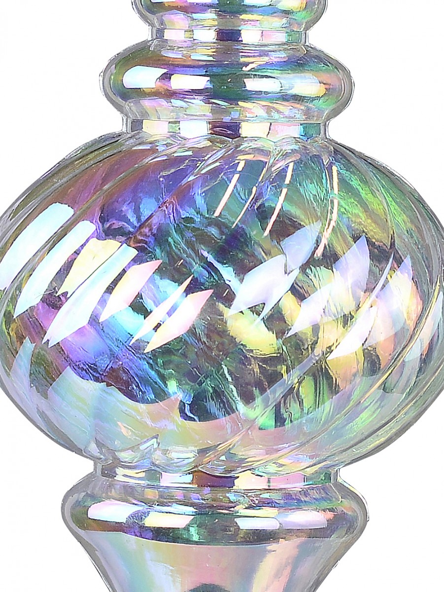 Our 26cm Clear Iridescent Christmas Ball Finial Hanging Ornament captures that Christmas day magic - you know, that twinkle when the morning sun hits your tree just right and suddenly every bauble seems to shimmer? That's what this little stunner does - only, well, all day. The swirling iridescence is a bit mesmerising, honestly. The colour seems to shift and dance if you move around it or if the fairy lights hit at a new angle - gorgeous. We think it's lovely nestled amongst warm metallics like rose gold, brass or even classic red for something truly festive.