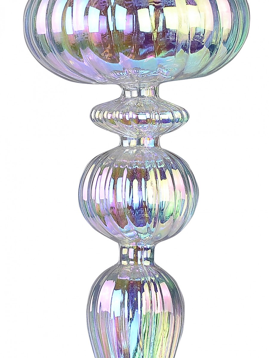 What makes it so magical is the clear iridescent finial. This picks up and bounces colours from every angle - making it look almost as if it's changing colour throughout the day or evening. Imagine a whole tree decorated in these radiant icicle ornaments, or how lovely they'd look as an accent with reds and golds on your table setting or Christmas garland. The vertical ridges are classic Christmas but also feel modern, and there's just something about the simple silver string that finishes the look.