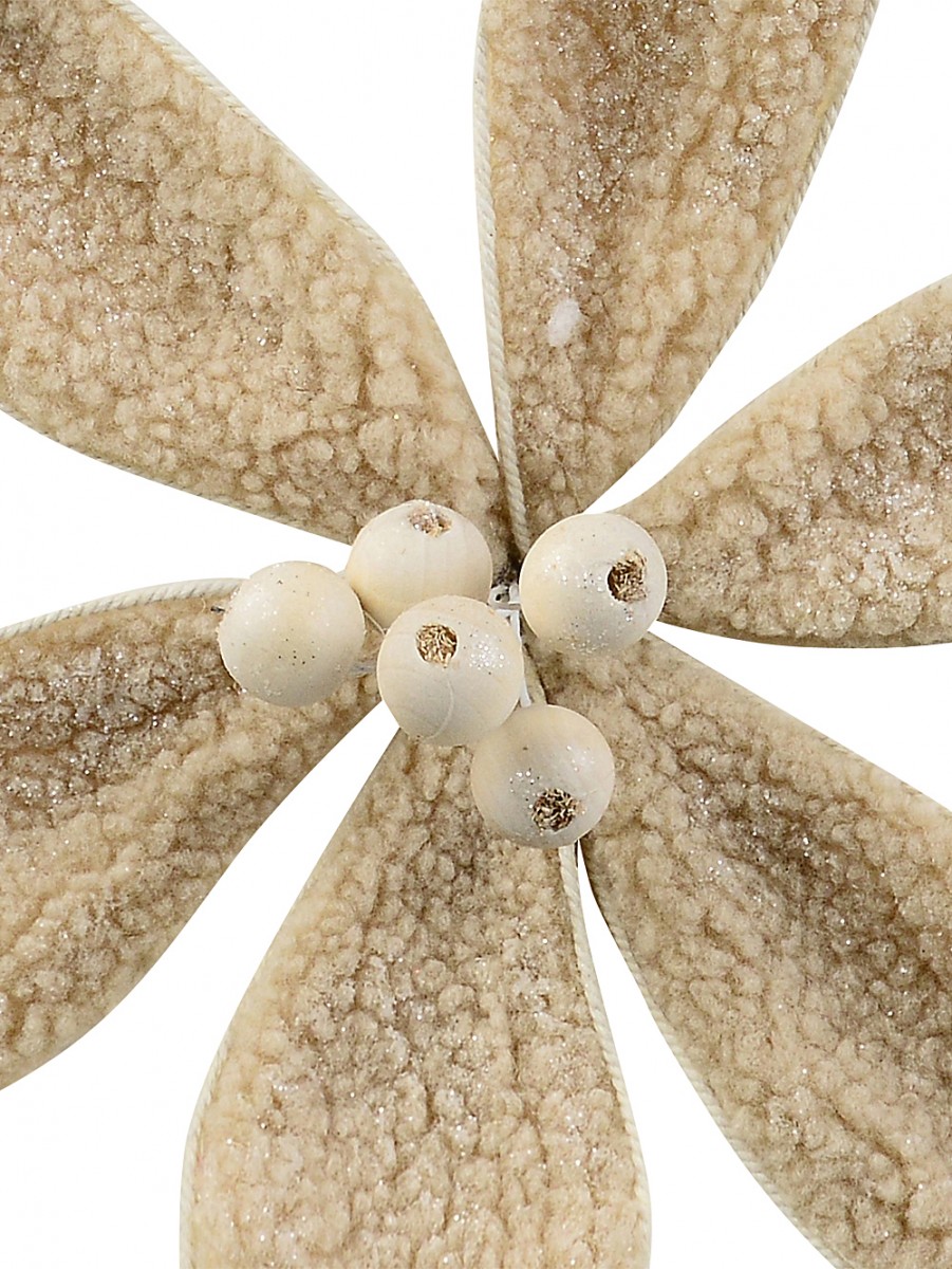 Whenever we see our 30cm Light Brown Wool Natural Poinsettia Flower Christmas Tree Clip Pick, the first thing that springs to mind is a white Christmas in a country farmhouse - those warm, homey festive scenes just like we see in films. It's why this flower pick is so special - it's the perfect touch of rustic Christmas and brings that handmade wool cosiness to any tree, wreath, or centrepiece. We really adore how the bracts are wound with a bit of natural twine for texture, dusted all over with iridescent glitter that does glimmer (sometimes too much but that's all part of the magic!) plus those snow-berry look balls nestled in the middle to complete the wintry flower.