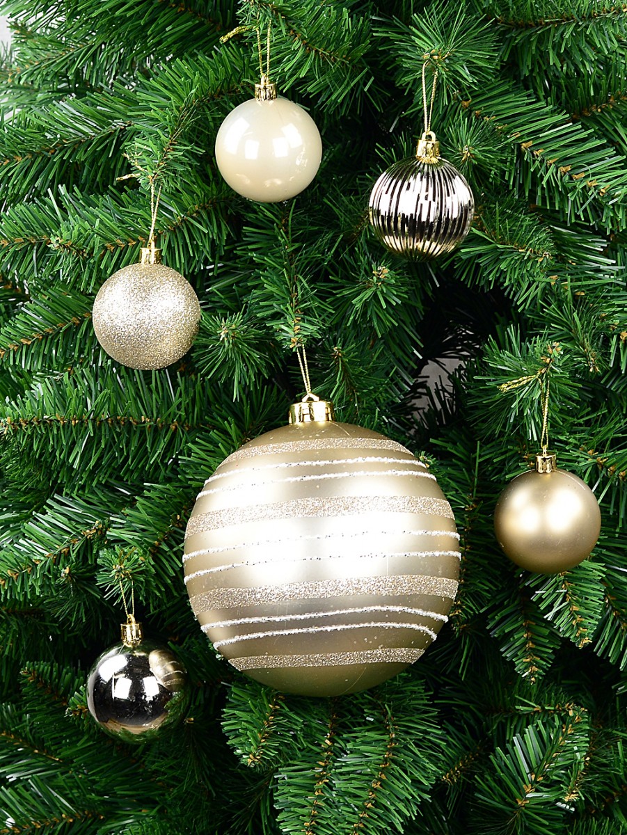 Each one has a gold string that'll add an extra touch of magic to any Christmas tree. They've got gold caps and come in that sparkly sphere style that brings the real holiday spirit into your home.