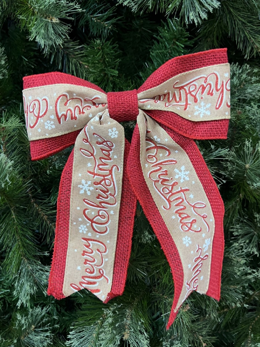 Enjoy finding different ways to display this lovely bow that can provide extra sweetness, character and dimension to your decor. Use it to enrich the wall, door or your house, office or store entryway and warmly welcome your guests by wishing them 'Merry Christmas'! Utilize this in decorating for Christmas parties and events. Consider attaching one at different intervals to your fence using wire, along with one of our long garlands and then wrap it with our Christmas lights for night-time illumination. You will be thrilled with the display and the compliments received!