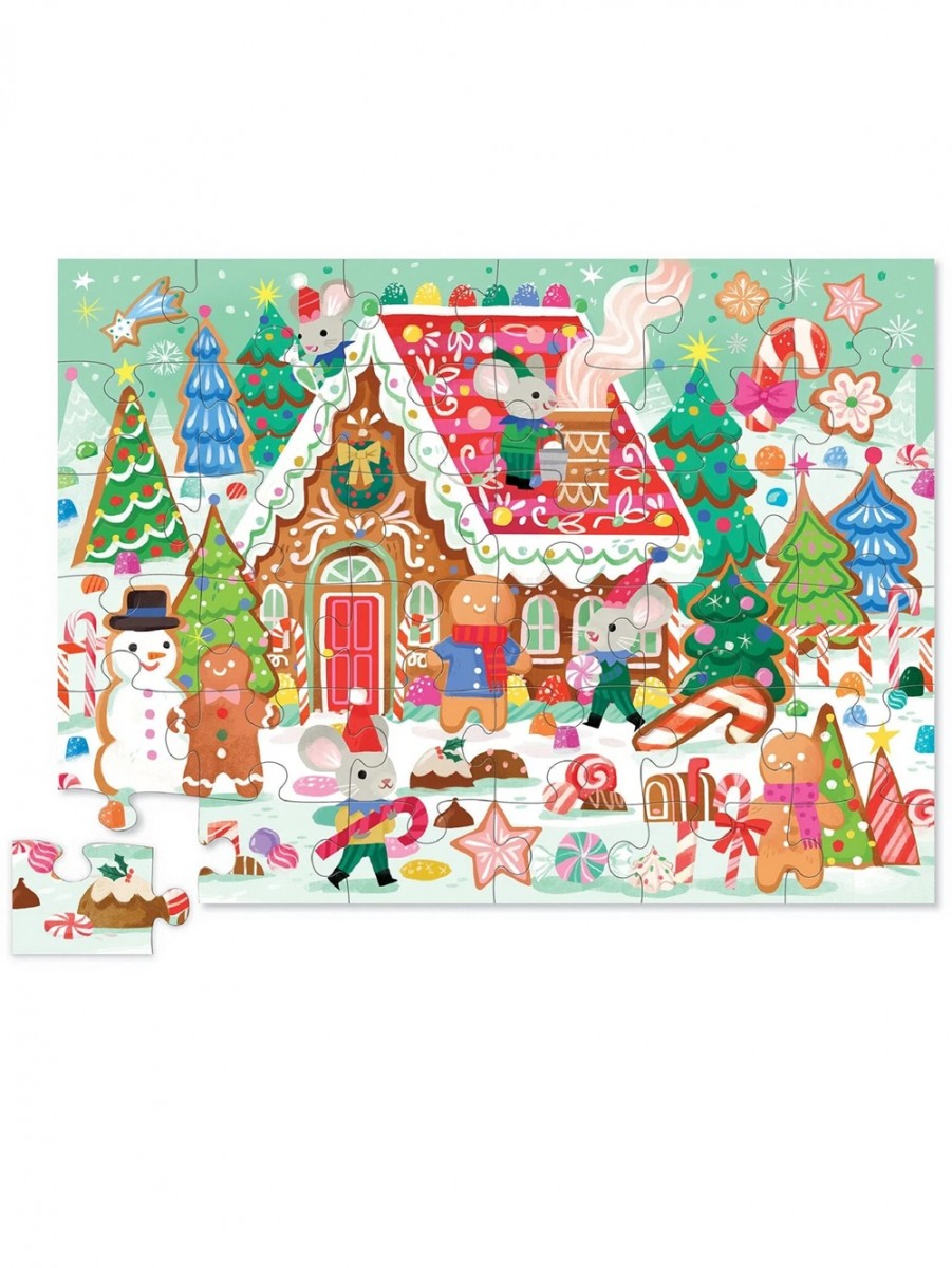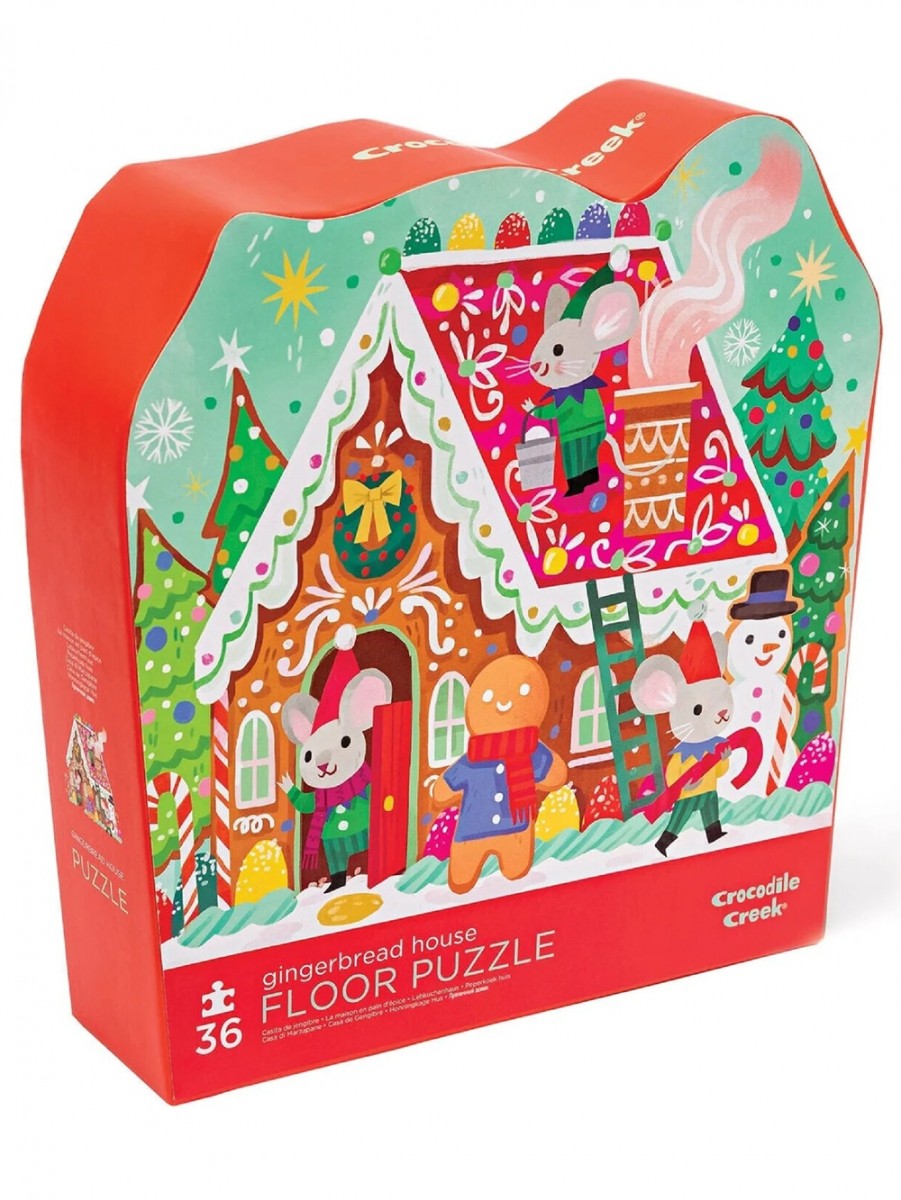 Is there anything more classic Christmas than a gingerbread house? Only this - our 36 Piece Crocodile Creek Gingerbread House Jigsaw Puzzle that features the happiest little gingerbread family and their sweet friends, the mice, decorating for their own Christmas in a forest of candy trees! This delightful floor puzzle is one of our favourite ways to get even very young kids involved in creating Christmas magic at home, and it can be used as everything from a calm playroom activity to pre-dinner entertainment on those busy festive days. Of course, the design is one hundred percent cheerful, colourful, and fits in easily with all the traditional colours and textures of holiday decorating. The big pieces are ideal for young hands and ages 3+, but every single member of our team has said they'd jump at a chance to help finish it! This Crocodile Creek puzzle comes in a perfect box for gifting or display - measures 40cm x 50cm, colour: N/A.