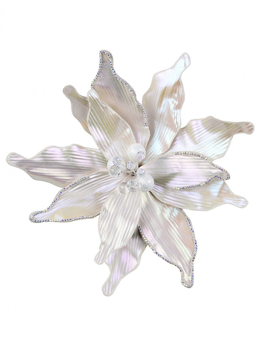 We love how easy it is to spruce - just unpack, fluff up those wired midribs to shape the flower, and use that handy alligator clip to attach it anywhere: trees, wreaths, bouquets - really anywhere you want a bit of sparkle. And it's lovely for all sorts of Christmas decorating: traditional reds and golds or frosty winter whites.