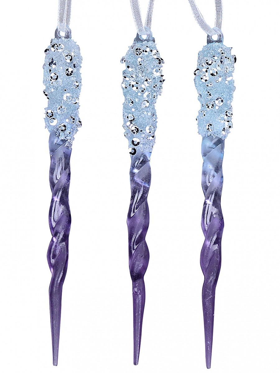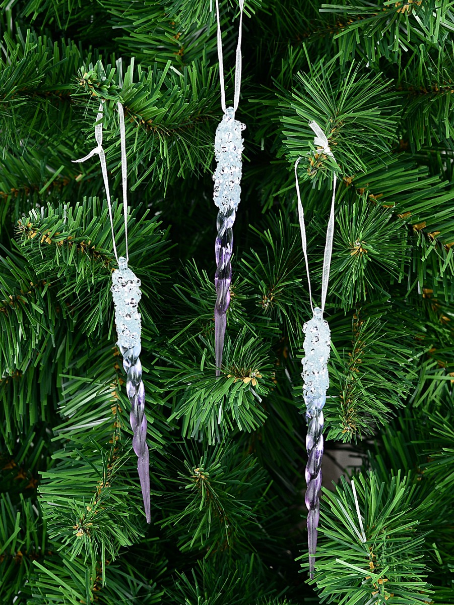 They're easy to decorate with since every icicle comes with its own white mesh string - we recommend popping them in pairs throughout your tree for a wonderful effect. You get three per pack, each a classic 15mm x 15mm x 12cm size that blends perfectly with both traditional decorations and modern styles. The gradient from clear to purple gives them so much character too.