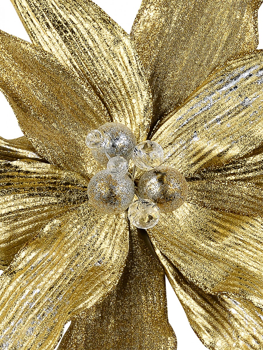 There's something enchanting about the glimmering gold bracts with their mix of smooth and distressed finishes. Each one is lightly wired for simple shaping - so you get natural-looking petals without any effort. The alligator clip means you can attach it to wreaths or garlands as well (or even make it the centrepiece of your floral arrangement). And those frosted baubles and diamante berries in the middle? Well, they really make you feel that extra festive excitement.