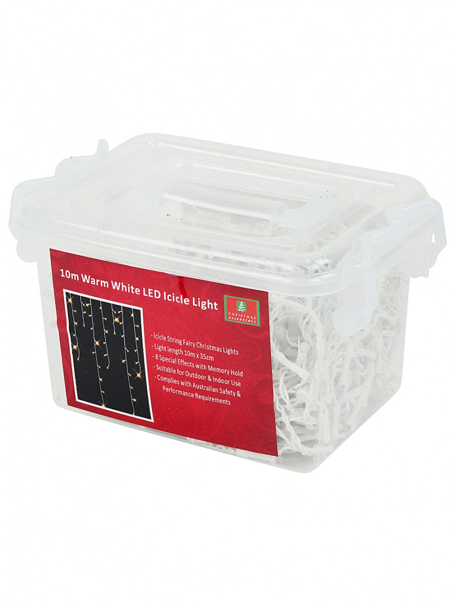 With warm white icicle lights that drop down in pretty strands like brightly sparkling gems and jewels along a continuous cable, this Warm White LED Icicle Light is a great way to decorate interior and exterior walls, fences, lawns, balconies, pavilions, patios or any indoor or outdoor space with hardly any time or effort, creating a festive and cheerful atmosphere for every party, celebration or special occasion from Christmas to New Year.