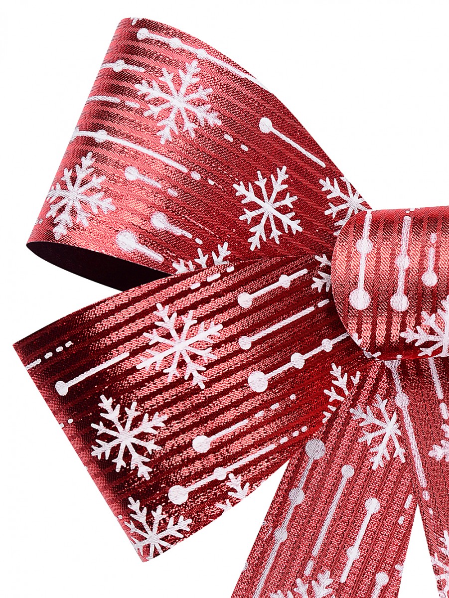 This Christmas bow is super easy to tie wherever you want, plus the polymer mould backing helps it keep its shape - even if you have little hands tugging at it! Covered in metallic glitter thread, snowflakes, and little straight lines with dots (almost like falling snow), it fits right in with other festive decorations. We pop ours onto garlands, trees, wreaths, and gifts for that extra bit of wow factor. Nothing says Christmas quite like a beautiful red bow - let's make some memories together this year!