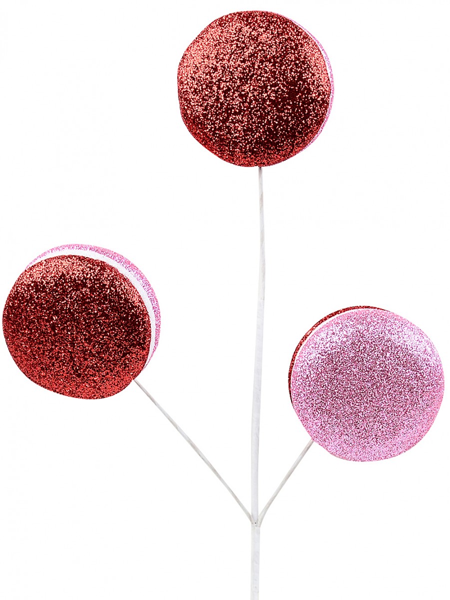 Christmas is all about sprinkling a bit of magic on everything, isn't it? And there's nothing quite like our 46cm Macarons With Red & Pink Glitter Cookie Shells Long Christmas Stem for giving your festive display that special touch. These confectionery spray picks look good enough to eat - but just quietly, they're not edible! Each stem boasts three fabulous macarons with sparkling red and pink glitter shells and a gorgeous white filling embellished with silver glitter - the little details are what make them so lovely.