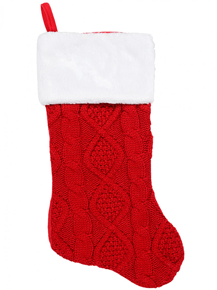 Oh, there's just something about a classic Christmas stocking hanging by the fireplace or sitting under the tree that makes the whole house feel ready for the season. Our 48cm Red Twisted & Trellis Cable Stitch Pattern Look Stocking With White Cuff is exactly what every festive home needs - it's a real showstopper. It just has that extra bit of charm - you get the bold red soft knit and the snowy white cuff, plus this really eye-catching cable stitch pattern.