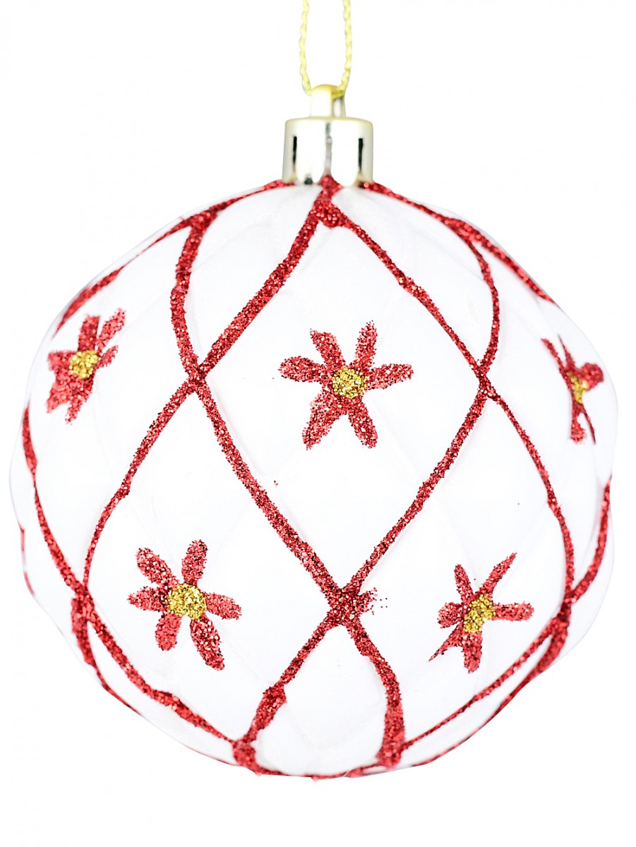 With their bold sphere shape - 80mm x 80mm x 80mm to be exact - they stand out on any tree. Each bauble is carefully detailed with either white textured diamond patterns or red, all decorated with glittery lines and starbursts with gold centres. The flower ends and diamonds give them loads of interest. And we're obsessed with how the gold hang string gives them an extra touch of elegance.