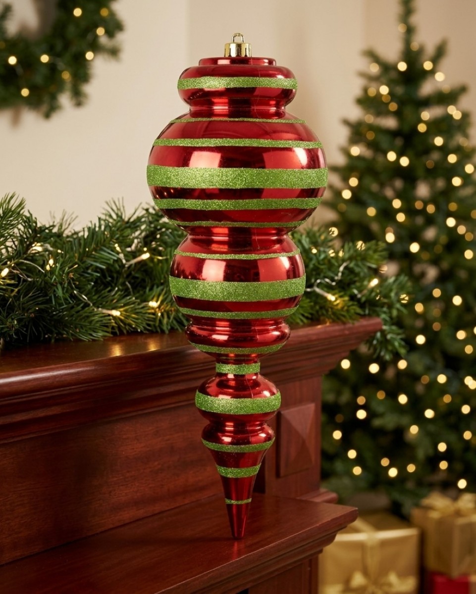 Elevate your festive environment with the commanding presence of this monumental ellipsoid finial, meticulously designed to offer a bold and sophisticated holiday glow. Featuring a stunning apple red finish, this oversized silhouette provides a professional scale that standard ornaments cannot match. The elongated icicle shape creates a dramatic vertical line, making it a premier choice for high-end retail shop fronts or a prestigious festive lounge room