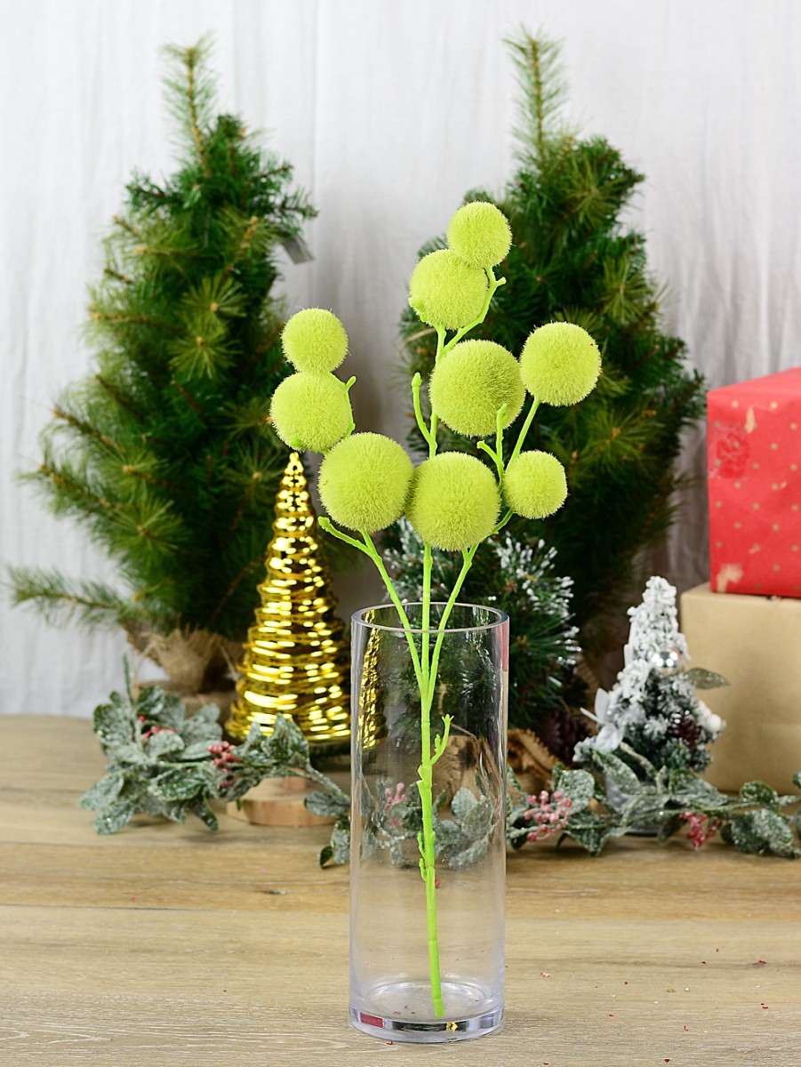Now this is one Christmas stem that just screams festive fun! Our 52cm Light Lime Green Flocked Bauble Spray is for families who really want their home to have its own magical Christmas identity. The pop of light lime green is such a welcome twist on the usual classic reds and golds. When you first unpack it (no sprucing required, how great is that?) you'll notice the Grinch-inspired green branch with its whimsical branchlets, dotted with 9 flocked ball baubles in sphere shapes ranging from 30 to 60mm. They look like fluffy ornaments�soft, playful, and honestly a joy to touch. At 20cm x 60mm x 52cm, the stem can even be trimmed to fit your vases or wreaths, so it's flexible for all sorts of arrangements.