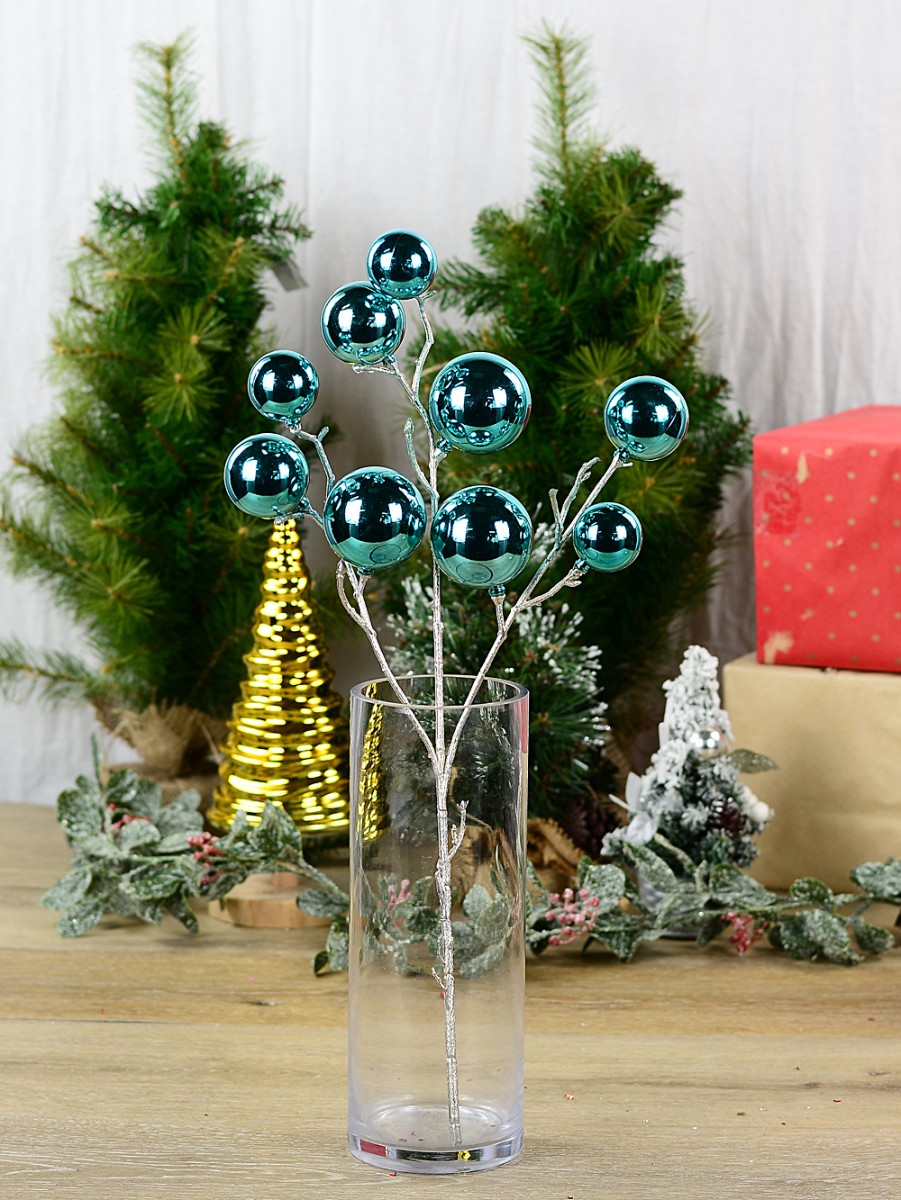 Those 9 shiny turquoise baubles (measuring between 40mm and 60mm) are perched on a matte silver branch that brings real depth. It works best in a vase, poked into floral arrangements or even added to your wreaths - but the world's your oyster. The stem is cuttable for those who love a bit of customisation, and at 26cm x 60mm x 52cm (with a lovely long 30cm stem), it makes an impact. You don't need to do any sprucing - just unpack, arrange and enjoy the compliments when friends and family see how fresh your Christmas styling feels this year!