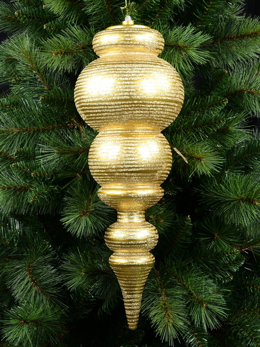 Add a touch of glitz and glamour to your home with this large gold finial that is made from slightly flattened metallic gold baubles with a tapering base. One look at this splendid ornament is an instant reminder of this wonderful time of year and it definitely makes the atmosphere of any room or venue more festive.