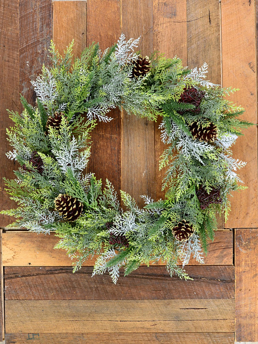 Each wire-spun wreath is decorated with three different pine tip varieties, and topped off with pinecones, plus rattan look stars that bring out even more seasonal cheer. There are lightly flocked pine tips for that snow-dusted effect we all secretly adore. It's strong but surprisingly light at just 1kg, and sized at 60cm x 12cm x 60cm, so it's ideal for front doors, windows, mantles, or even your stair railing if that's where your spirit takes you.
