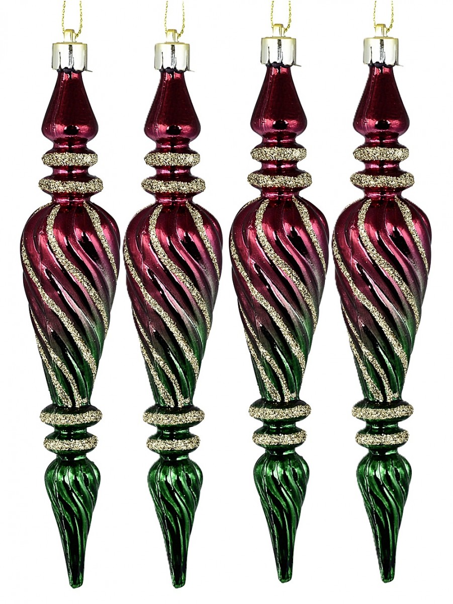 If your Christmas decorating style is all about glitz, rich colour, and making a bold, joyful impression - oh wow, we can just imagine these 6x 18cm Shiny Red & Green Textured Icicle Finials With Gold Glitter Lines shimmering on your tree. They're generously sized at 35mm x 35mm x 18cm and each finial has this textured icicle shape that really makes them feel magical - not like any ornaments you'll see in every other home. Plus, each one's topped with a gold cap and hang string for extra sparkle. The colours have this optical fusion effect (so the red and green blend right before your eyes into a deep, enchanted shade) with swirling gold glitter lines that catch every twinkle of fairy light and look incredible under moody candlelight too.
