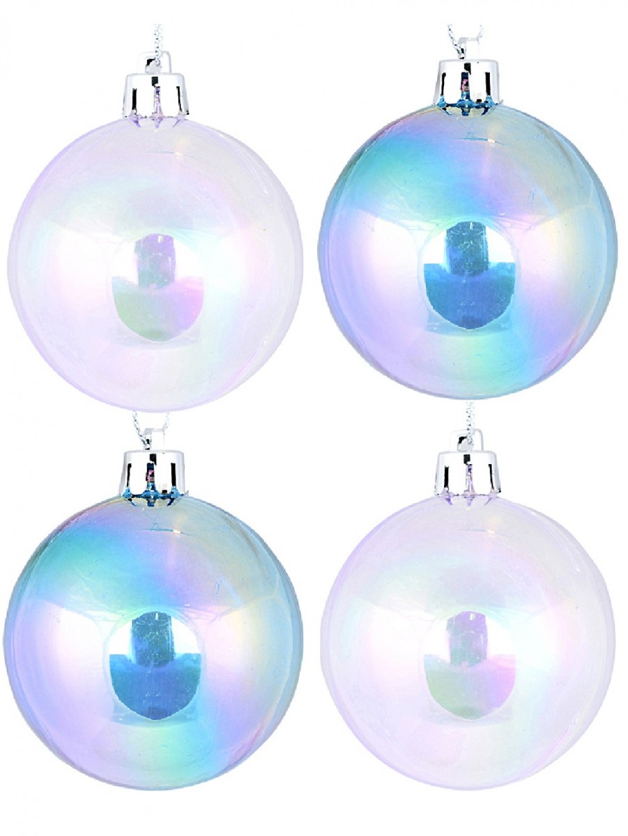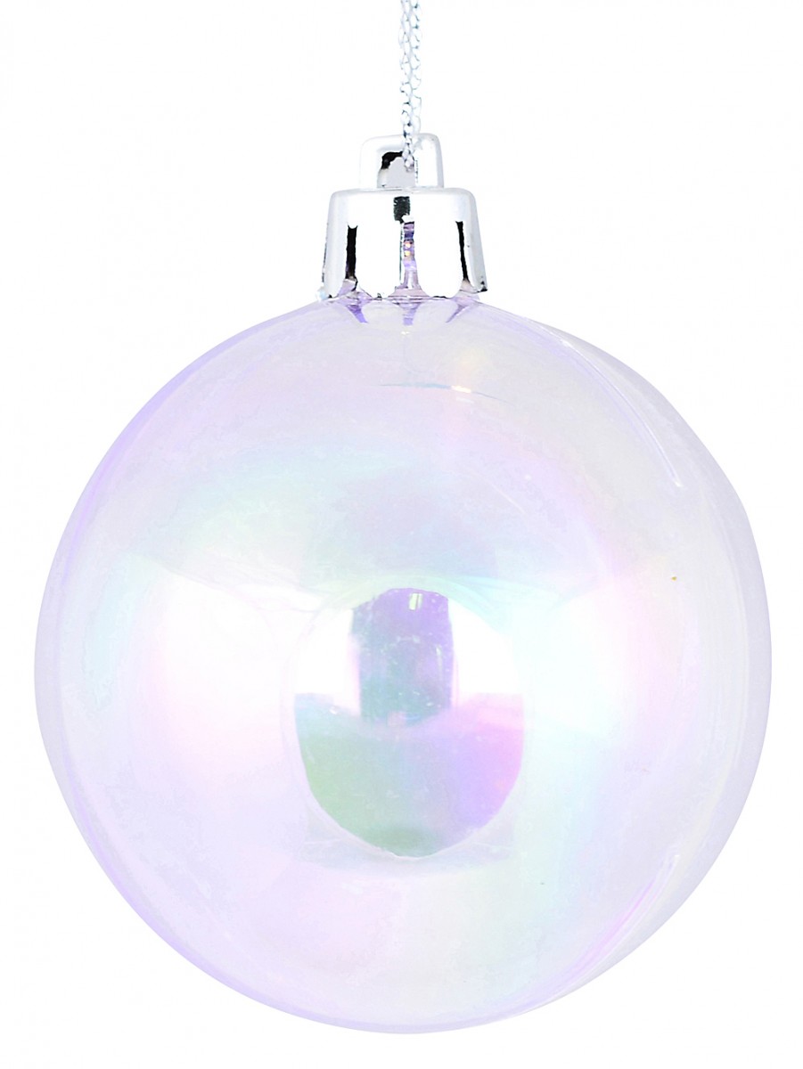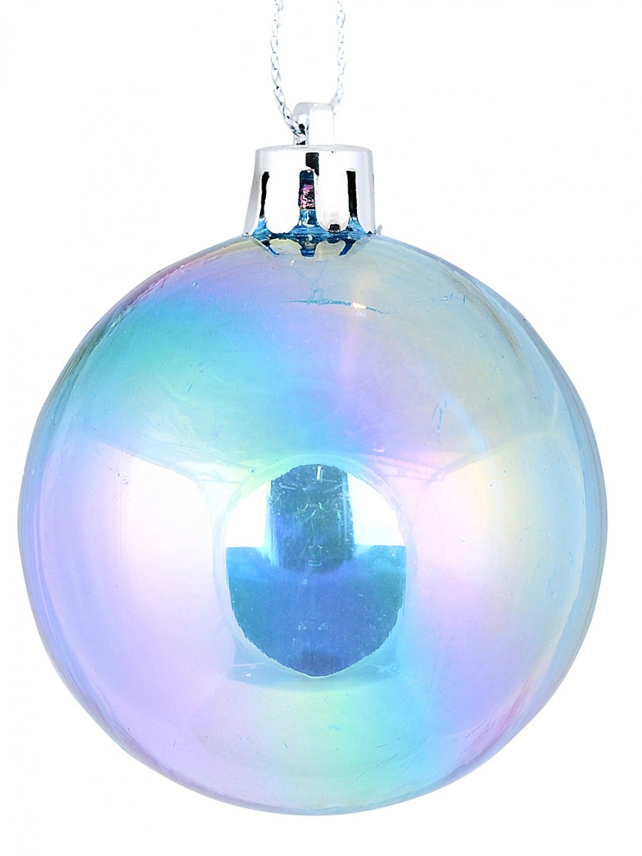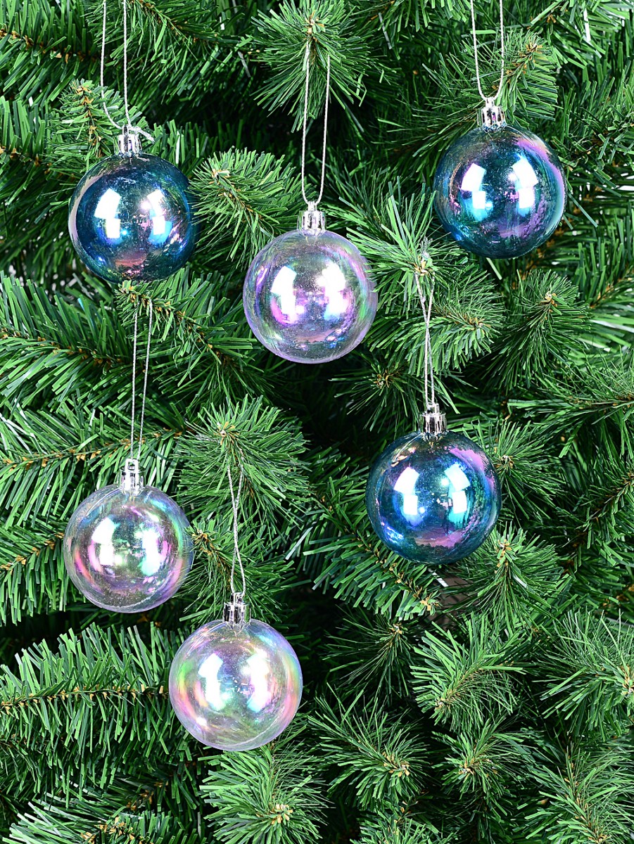 This bulk pack includes three transparent baubles with that dreamy iridescent shimmer, and three clear blue baubles with the same finish. All include silver caps and hang strings. And no need to worry about little ones or excitable pets at family gatherings - they're shatterproof and perfect for any environment. Measuring 60mm x 60mm x 60mm each, they're ideal for mixing and matching with all sorts of festive decorating styles, whether your Christmas leans more classic or contemporary