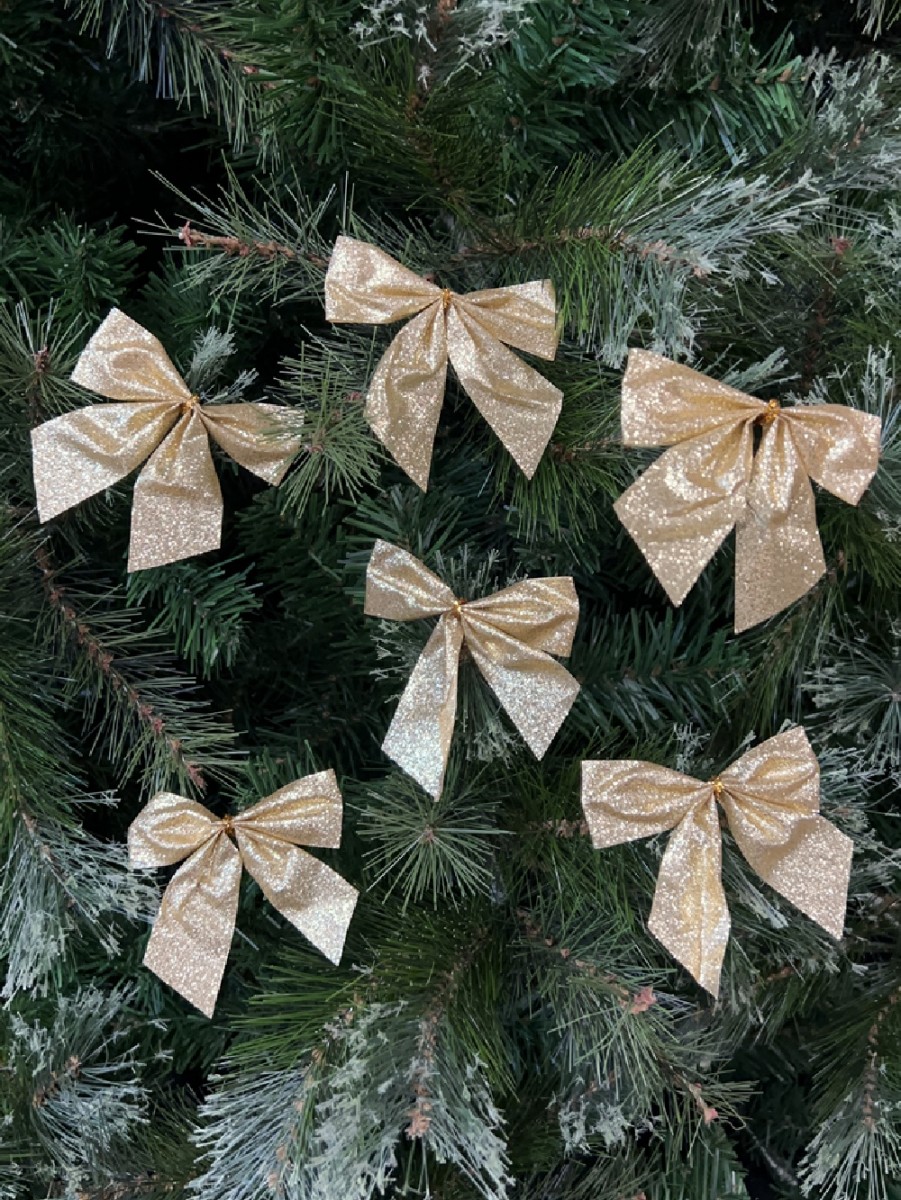 You will love the Small Gold Bow Decoration set because it will give a lovely touch of Christmas any tree or table setting. The Small Gold Bow Decoration set has six golden glittered bows that will decorate your walls like pieces of treasure. Be warned, they are sold as a pack of six and not sold individually. They do, however, have a quality of splendour with their promising tinsel wires that make decoration time fast and effortless. These bows will be a wonderful splash of colour in the background of your family gathering pictures this season. Christmas Warehouse, Australia's Largest Christmas Store, will bring it wherever you need it, with its shipping delivery worldwide.
