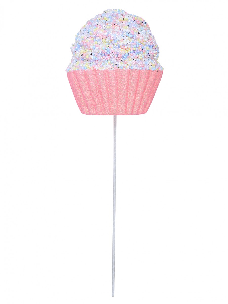 We can't get enough of this pastel cupcake - it looks good enough to eat! Our 71cm Pink Cupcake With Pastel Sprinkles & Silver Tinsel Long Christmas Stem is sprinkled with festive magic, swirled icing, and a whole heap of Christmas cheer. We always say Christmas is more fun with a touch of whimsy, and this sweet decorative stem delivers. It has a pink cupcake case, white textured ‘icing', iridescent glitter for extra sparkle, and the most magical pastel sprinkles (with flecks of shiny silver tinsel that catch the light beautifully). At 22cm x 12cm x 71cm it's sure to make a statement on any tree, wreath, garland, centrepiece, bouquet or floral arrangement. And we think it's just perfect for families who love getting creative at Christmastime - simply cut the stem for your ideal height and have fun decorating together. Pair it with other decorations from our delicious Christmas collection for a sweet treat theme the kids will love.