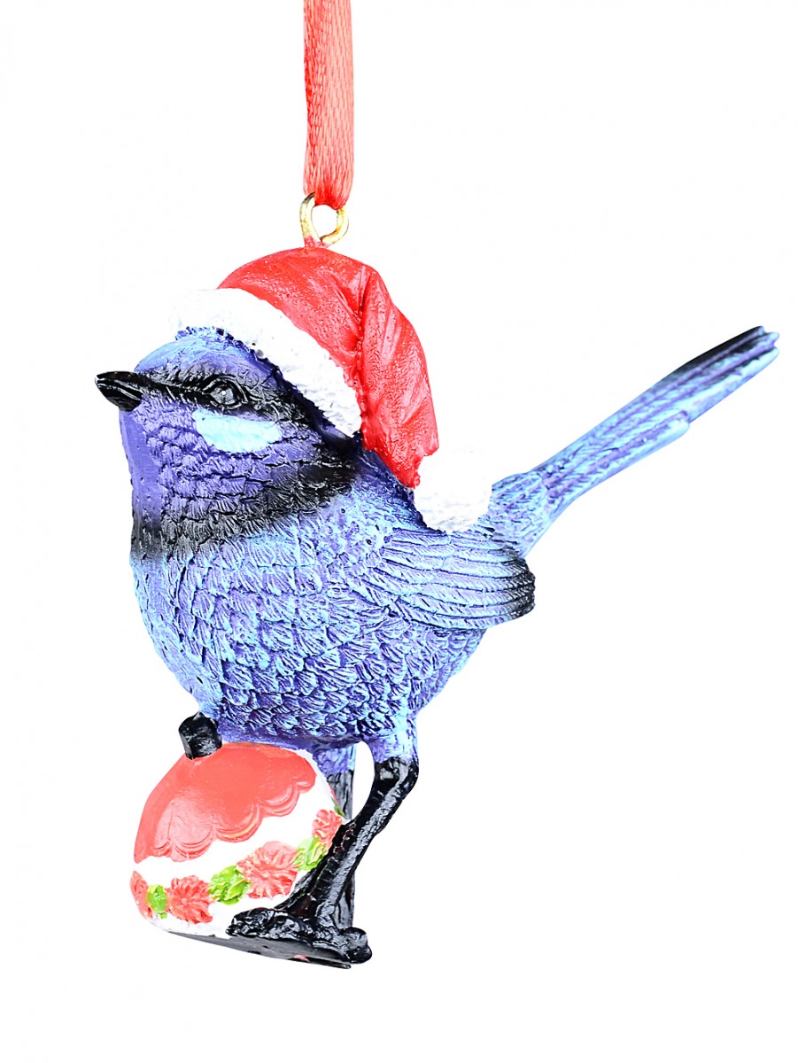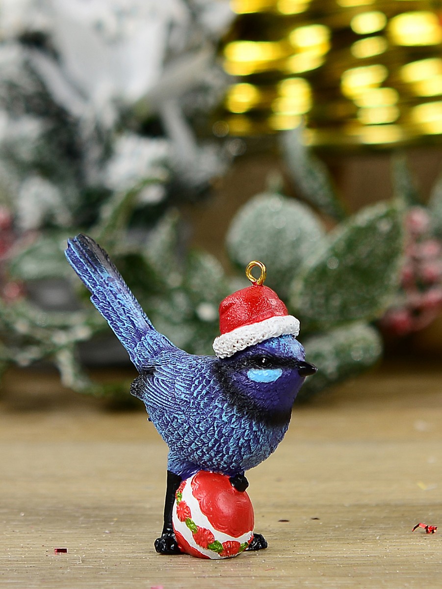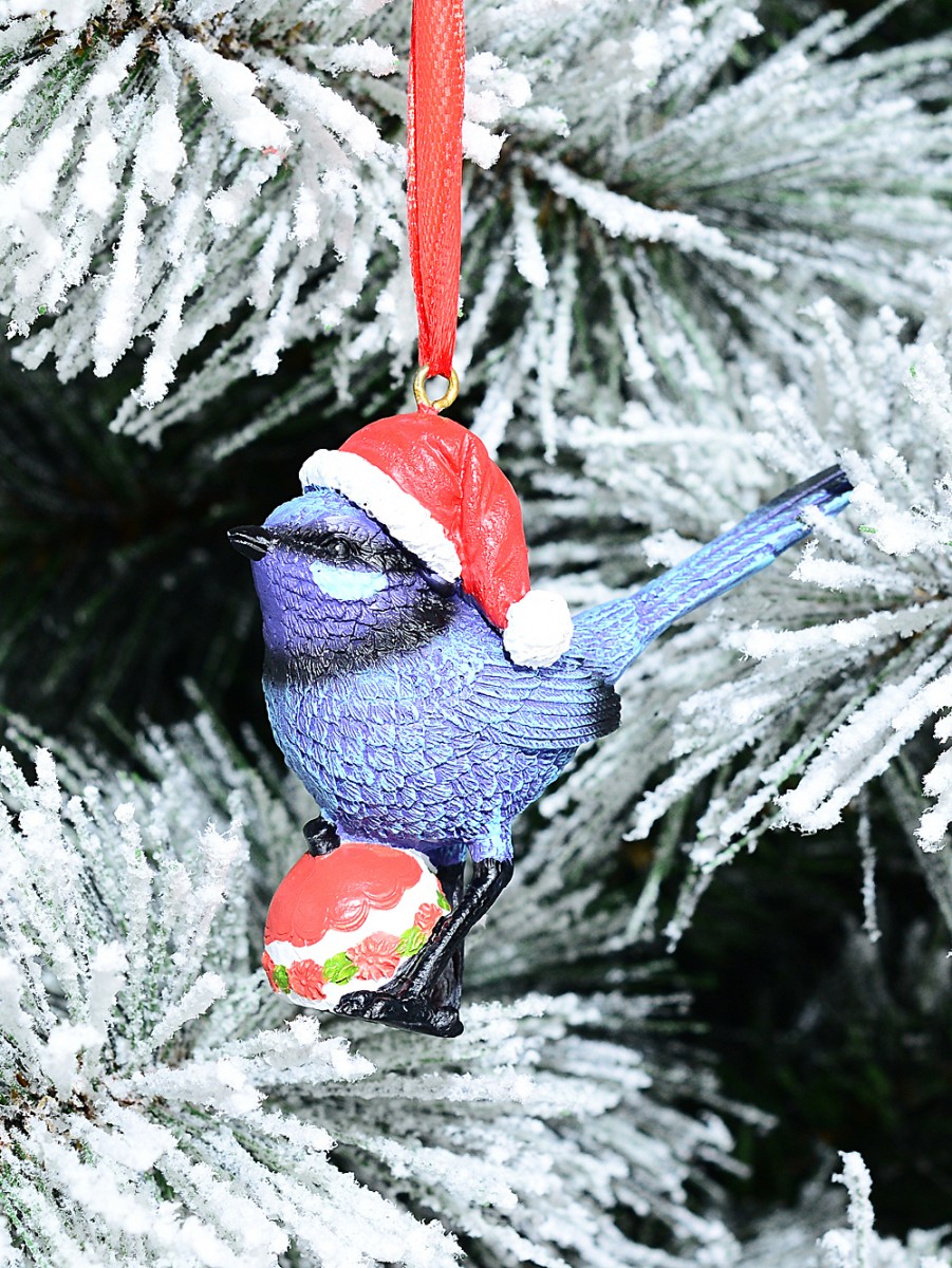 We've got a soft spot for Christmas decorations that bring a little bit of Aussie wildlife magic indoors - especially when they're as adorable as this Splendid Fairywren With Bauble Christmas Tree Ornament. We can't get enough of the brilliant blue plumage, with deep black markings just like the striking males out in WA. There's something so special about the way this resin bird holds a tiny red-and-white bauble in its claws, with a Santa hat perched jauntily on its head.