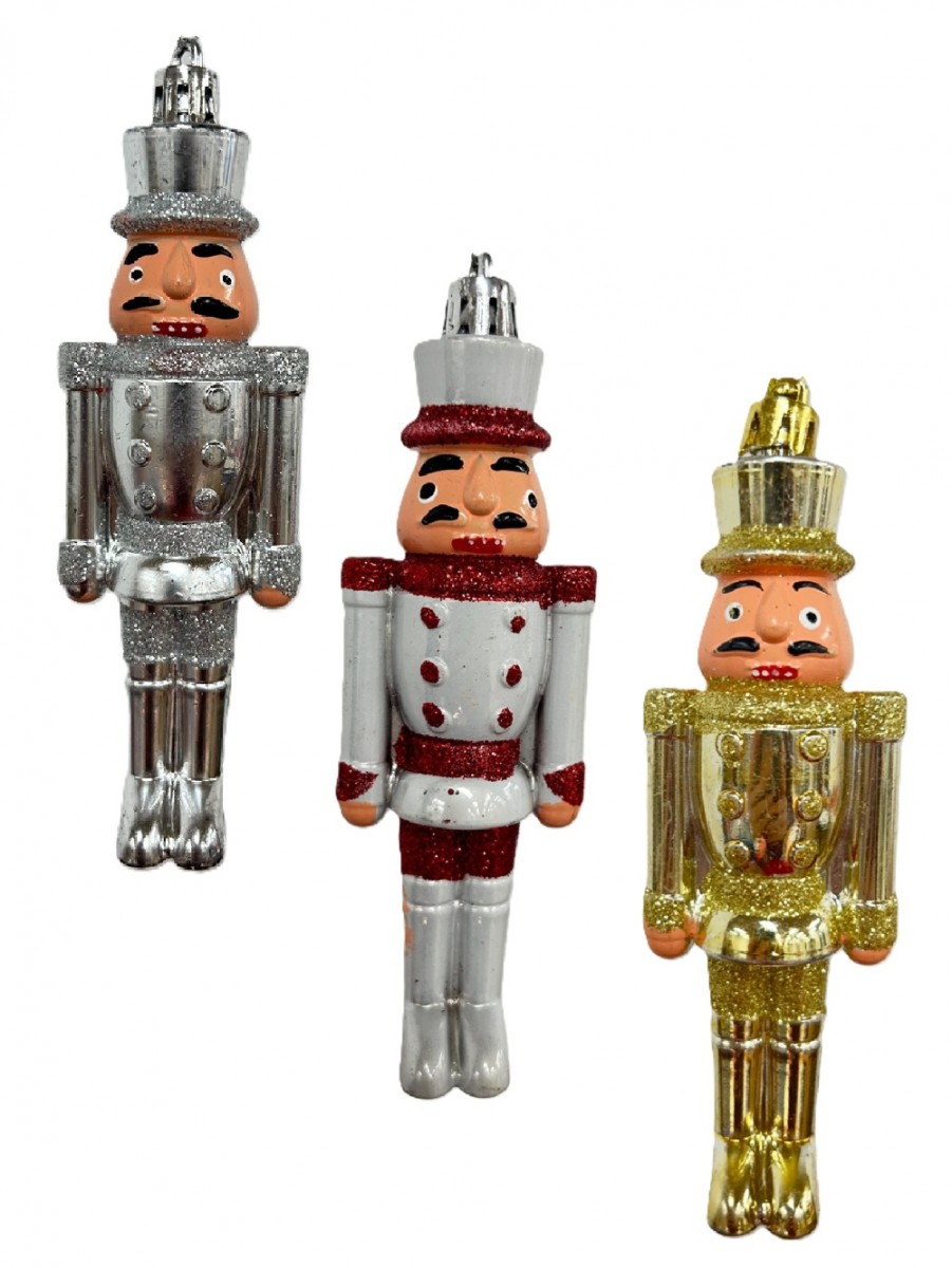 There's something about nutcrackers that just instantly makes us want to put on our favourite Christmas album, pour a hot drink, and bask in all the sparkly lights. And these Assorted 13cm Nutcrackers Christmas Tree Ornaments have brought that warm feeling into so many homes for years - we always hear about how they are a lovely finishing touch on the tree. The traditional nutcracker shapes, which come in shiny gold with glittery trim, matte silver with sparkling detail, and glossy white with pops of red, are sent out randomly from the available designs - if you get more than one, we'll pick a mix for you. Each sweet character measures 40mm x 28mm x 13cm and includes a cap and string for easy hanging from branches. We love them for how beautifully they fit into different decorating styles, whether you're all about glitz or prefer a more classic look. Their festive charm always makes everything feel a bit more magical - even if there's a bit of glitter sprinkled around!