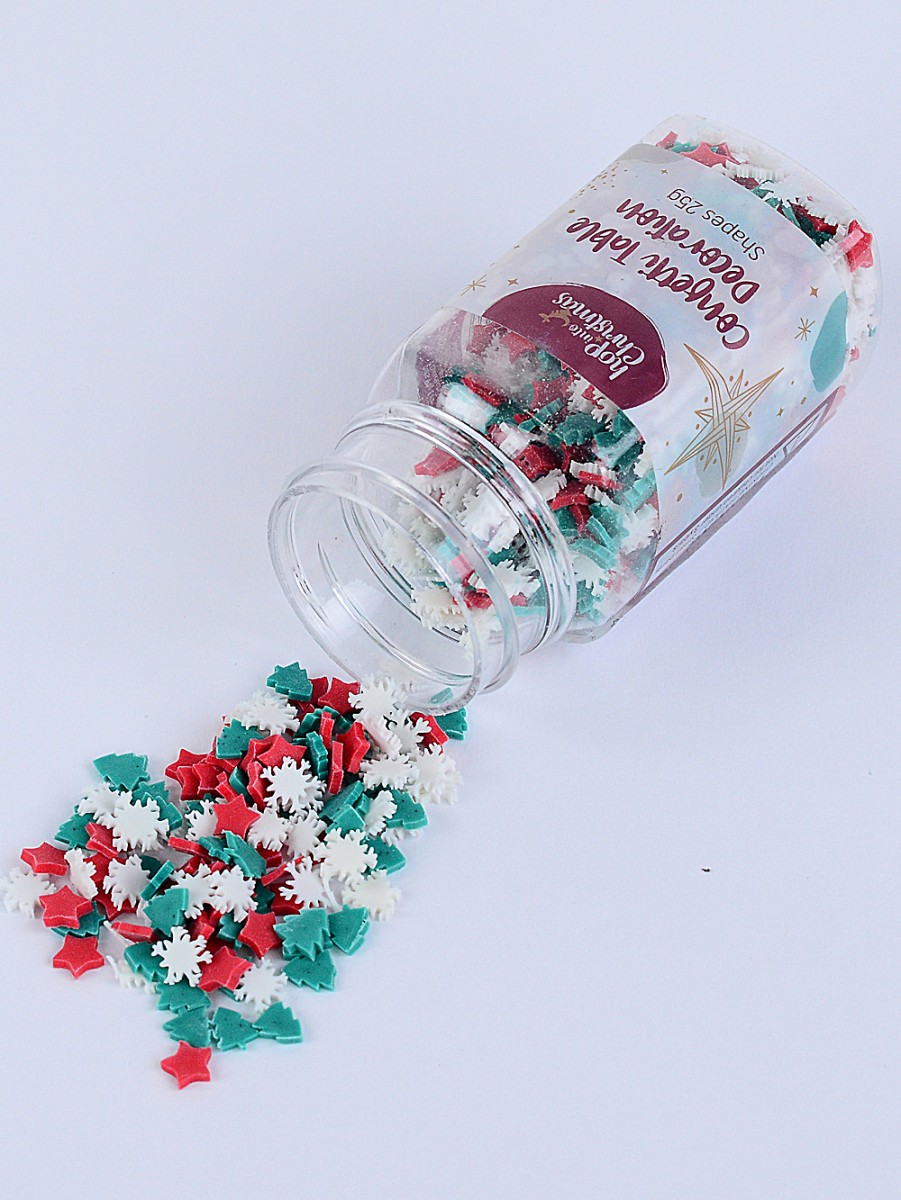 You might get sparkling metallic glitter, shiny gemstones with a beautiful iridescent finish, or classic stars and snowflakes paired with little green tree shapes that'll make any setting feel enchanting. The bottles measure 35mm x 35mm x 8cm and each pack is sold individually - but if you order two or more at once, we'll mix it up depending on what's available.
