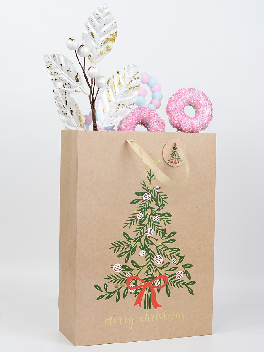 This large-size gift bag with natural with white, green, gold and red colours is the perfect way to present gifts beautifully without breaking a sweat wrapping each one individually.