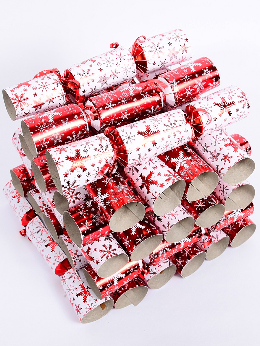 Add a festive pop of colour to your celebration with this bulk pack of 100 Red and White Multi Style Snowflakes Small Bon Bons - the perfect choice for Christmas dinners and lunches, whether in December or Christmas in July. Each cracker is decorated with an eye-catching mix of snowflake designs in classic red and crisp white, bringing a playful yet elegant touch to your holiday table.