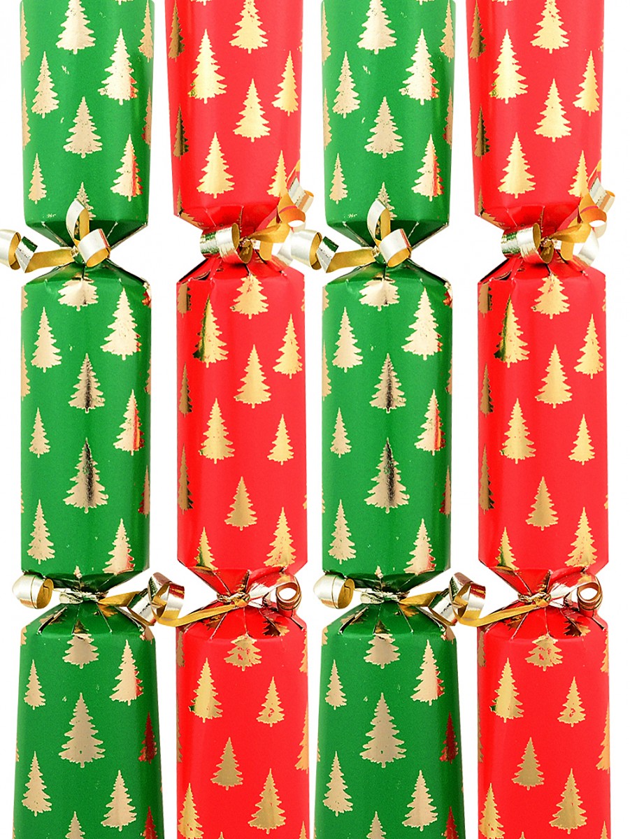 100x 24cm Red & Green With Gold Foil Christmas Trees Small Cracker Bon Bons