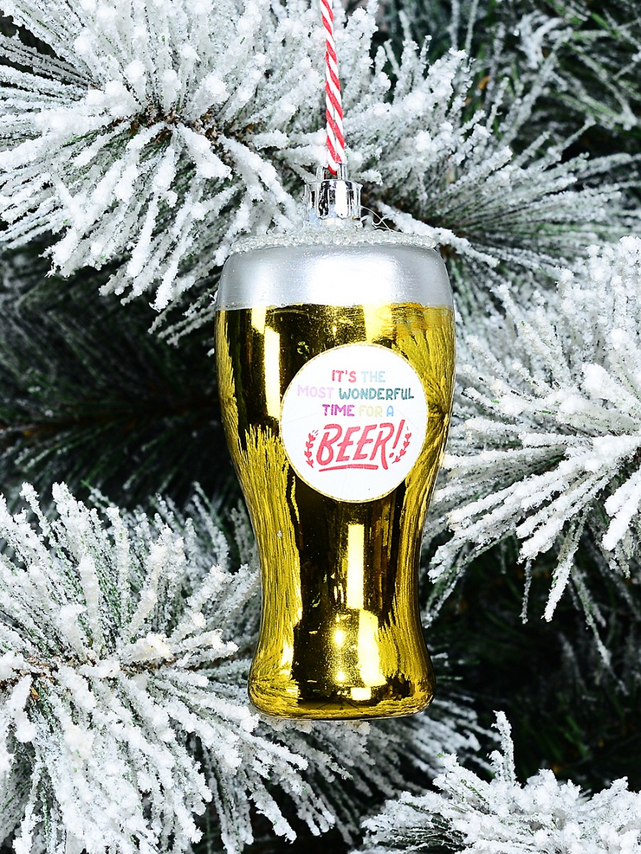 We all know Christmas is the most wonderful time of the year, but� perhaps it's also the most wonderful time for a beer! We're sure this 10cm It's The Most Wonderful Time For A BEER! Christmas Tree Ornament will be a huge hit on any festive tree this year. Just imagine seeing it glinting in metallic gold with that clever, frothy grey �beer head� made of clear water beads. It looks refreshingly realistic and, no, it's not drinkable - but it's full of fun Christmas spirit!