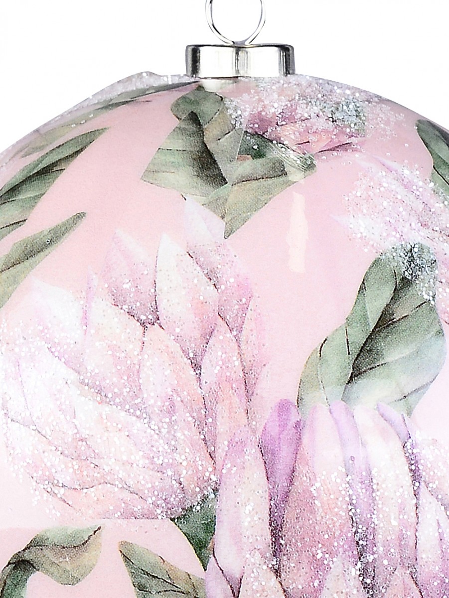 Our 10cm Waratah-Like Pink Ice Protea Flower With Silver Glitter Christmas Bauble (that's a mouthful!) is exactly the sort of ornament we love because - well, it's a proper showstopper. Not only does it have an incredibly pretty ice pink protea print topped with dazzling silver glitter, but it's actually inspired by Australia's beloved proteaceae family. So there are little nods to waratahs, banksias, and grevilleas too. These baubles are 10cm in every direction, making them just large enough to catch anyone's eye without feeling over the top. The sphere shape is perfect for classic holiday trees.