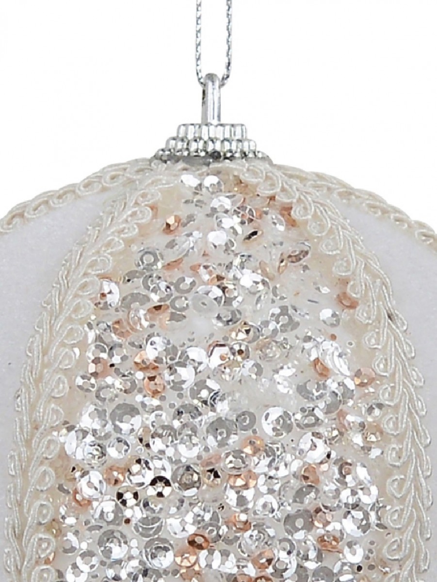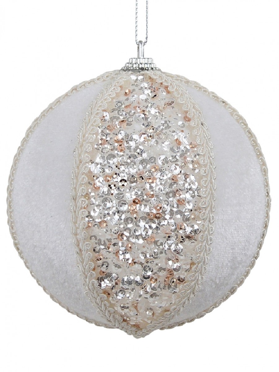 The White Sequin & Velvet Bauble Christmas Tree Hanging Decoration possesses a balance of decorative accent and festive appeal given its classic white themed design. It is made in a spherical shape in a portable size perfect for hanging on Xmas trees, ceilings, fireplaces, automobile dashboards, and wherever else you want to decorate with a Christmas motif. This bauble stands out from the rest given its iridescent shiny sequins.