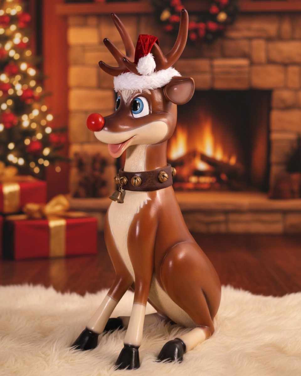 This sitting reindeer is full of personality, featuring a festive red hat and a collar adorned with gilded bells. Unlike static displays, this ornament includes a functionable main bell on the collar, adding a delightful auditory element to your seasonal festivities. The resin reindeers have a beautiful and detailed colour finishing that highlights their whimsical features, ensuring they remain a standout feature in both outdoor and indoor settings for years to come