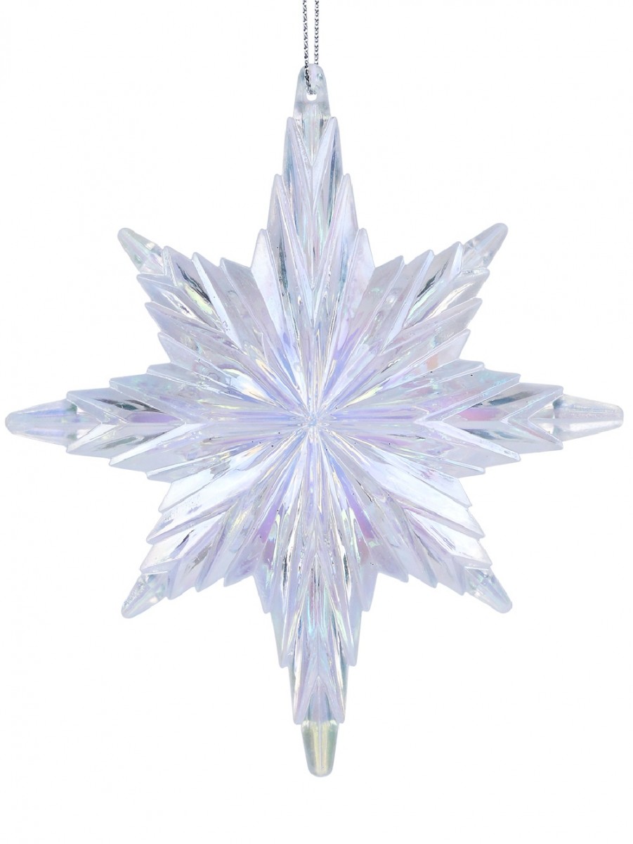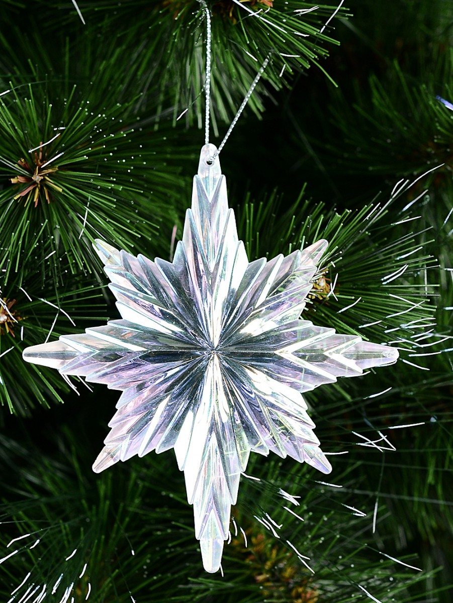 It features eight beautifully crafted points that glisten with iridescence, showing off a dazzling array of hues that radiate from a clear base. As light passes through it, there is a mesmerising display of colours that dance and shimmer across the room. The play of colours is truly enchanting, transforming your space into a breathtaking Christmas oasis. Our star-shaped hanging ornament is a true show-stopper that effortlessly makes a grand statement among other holiday ornaments. It is not only a visual delight but also serves as a conversation starter, especially when used as a Christmas tree centrepiece. Aside from being the perfect finishing touch for your holiday table, it's versatile enough to adorn your walls.