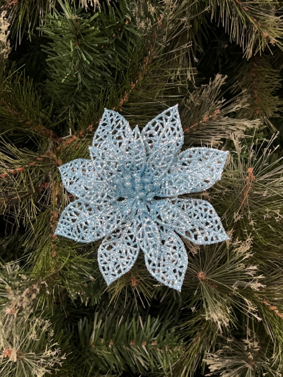 Who says that you can only decorate your Christmas tree in the traditional Christmas decor that you're used to? If you're inspired to shake things up this year, a floral-decorated Christmas tree can be a great way to go, and this Tiffany Blue Dimensional Glittered Flower Pick can be a perfect starting point.