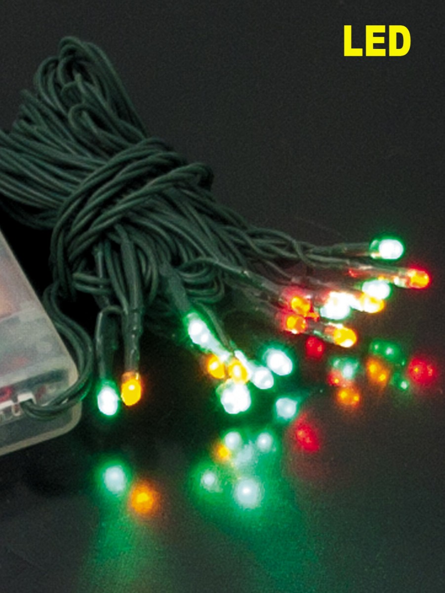 Christmas is a season of festive mood and fun atmosphere, and nothing can bring a livelier mood than having a colourful set of decorations that look nothing less than joyous � and when colours are the topic, one of the best decors that you can avail of would be this great set of colourful 15 Multi Colour LED Micro Bulb Battery Light String - 2.4m. The lights come in a dark green strand that will surely blend well with Christmas trees of the same shade and hue, while the LED lights provide a vibrant contrast to an otherwise dull and plain looking tree. The lights are battery operated, so there should be no problem with keeping the lights burning for the whole season. However, do remember that batteries are not included in the set, and must therefore be purchased separately. Wrap them around Christmas trees or string them on walls, wherever you choose to place them, this multi-coloured set of lights will surely be one Christmas decoration that you won't regret purchasing.