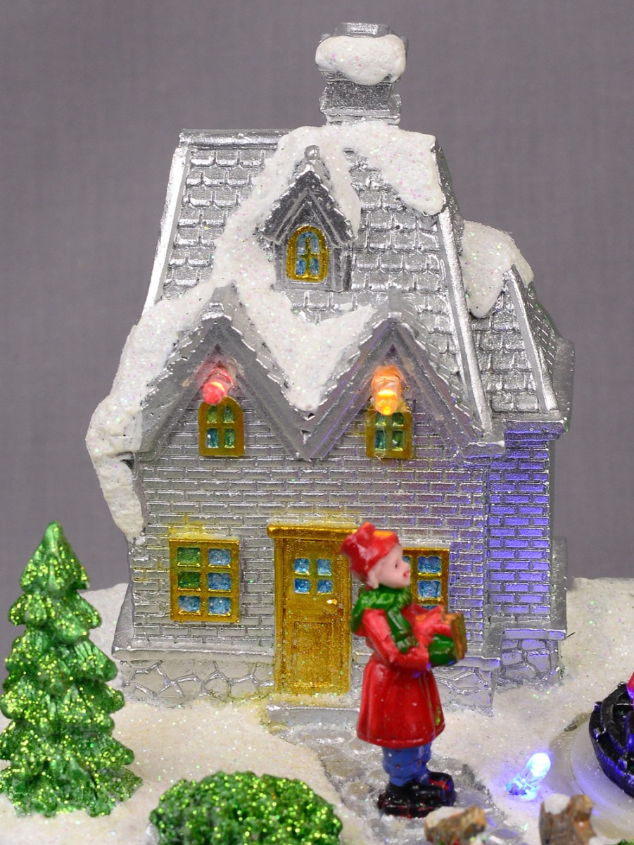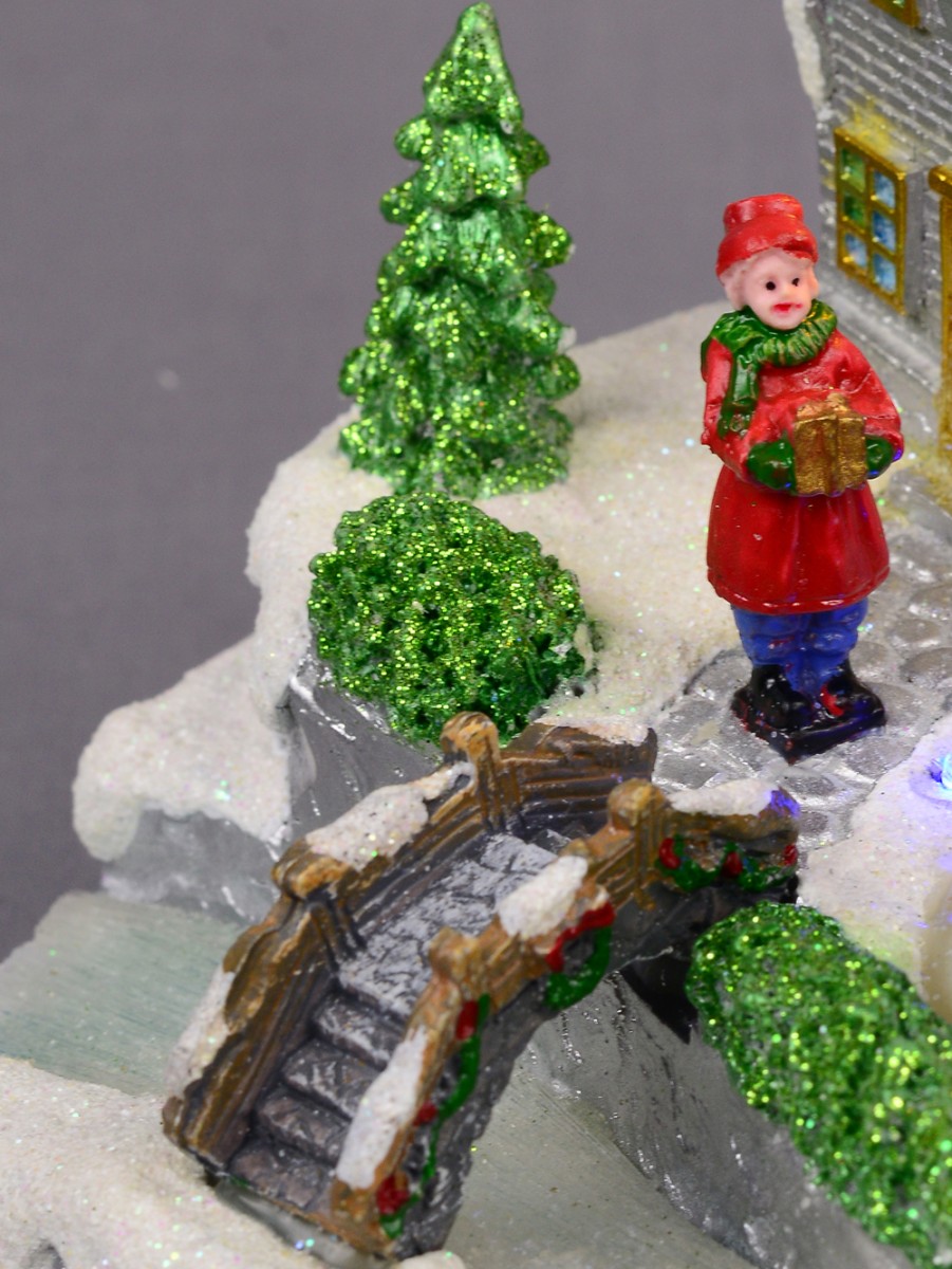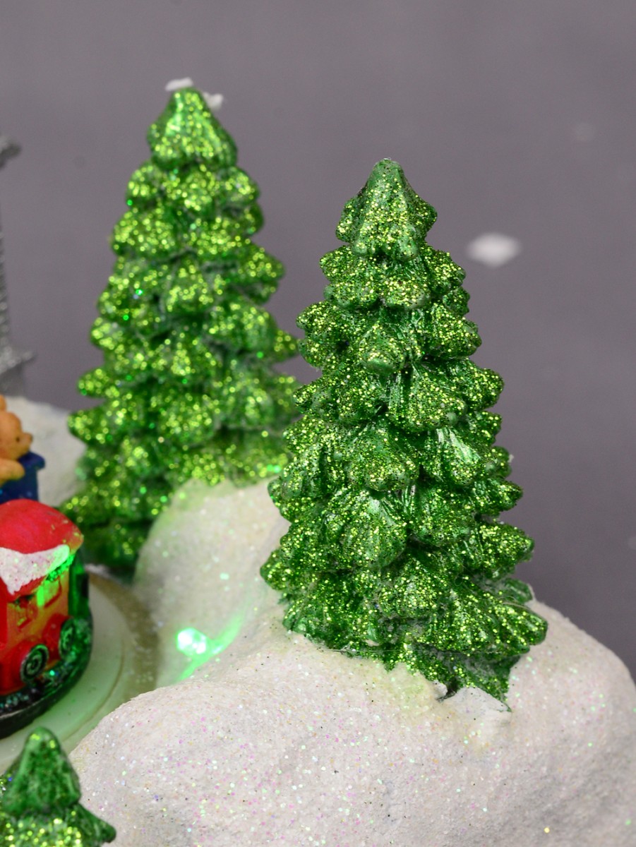 This Illuminated & Animated Home By The River & Train Scene is bound to be a conversation starter when you use it to decorate your home, office, shop, restaurant or wherever else this coming Christmas. This is because it showcases the detailed depiction of a riverside home during Christmas period which is covered by patches of white glittering snow. There are naturally growing coniferous green glittering Christmas trees, A train station on a circular rail line, snow covered ground with colourful glowing bulbs of red and green, an illuminated gold sparkling flowing river, a charming silver brick house and a gift bearing Santa standing right in front of it. The overall look is one of classic elegance and decorative charm. Buy now.