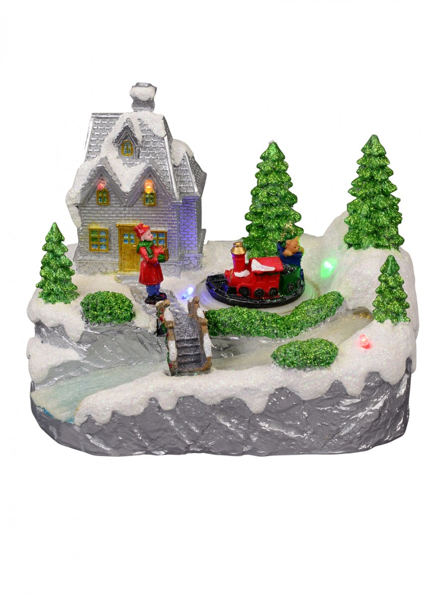 Add an ultra-special edition to your Christmas decoration this Xmas when you buy this Illuminated & Animated Home By The River & Train Scene from Australia's largest Christmas shop at such pocket-friendly pricing. This exquisitely crafted Christmas ornament is made from premium quality resin and depicts a decorated riverside home during Christmas celebrations.