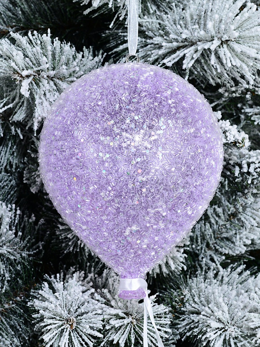 This balloon-shaped bauble's decorated with a white satin ribbon on the neck and includes chrome rings plus white mesh ribbon for easy hanging. Perfect for adding something festive to a window or over the mantlepiece too! These are shatterproof, so they'll suit any home with kids and pets running about - it really can go anywhere indoors you want extra festive joy. This bauble might lose the odd sequin in unpacking but that always happens with these sparkling decorations - it adds to the charm when you find a stray silver curl weeks later, doesn't it? Sold individually and perfect for mixing into both elegant Christmas themes or playful family fun. Just don't let anyone try to eat them - they're for display only!